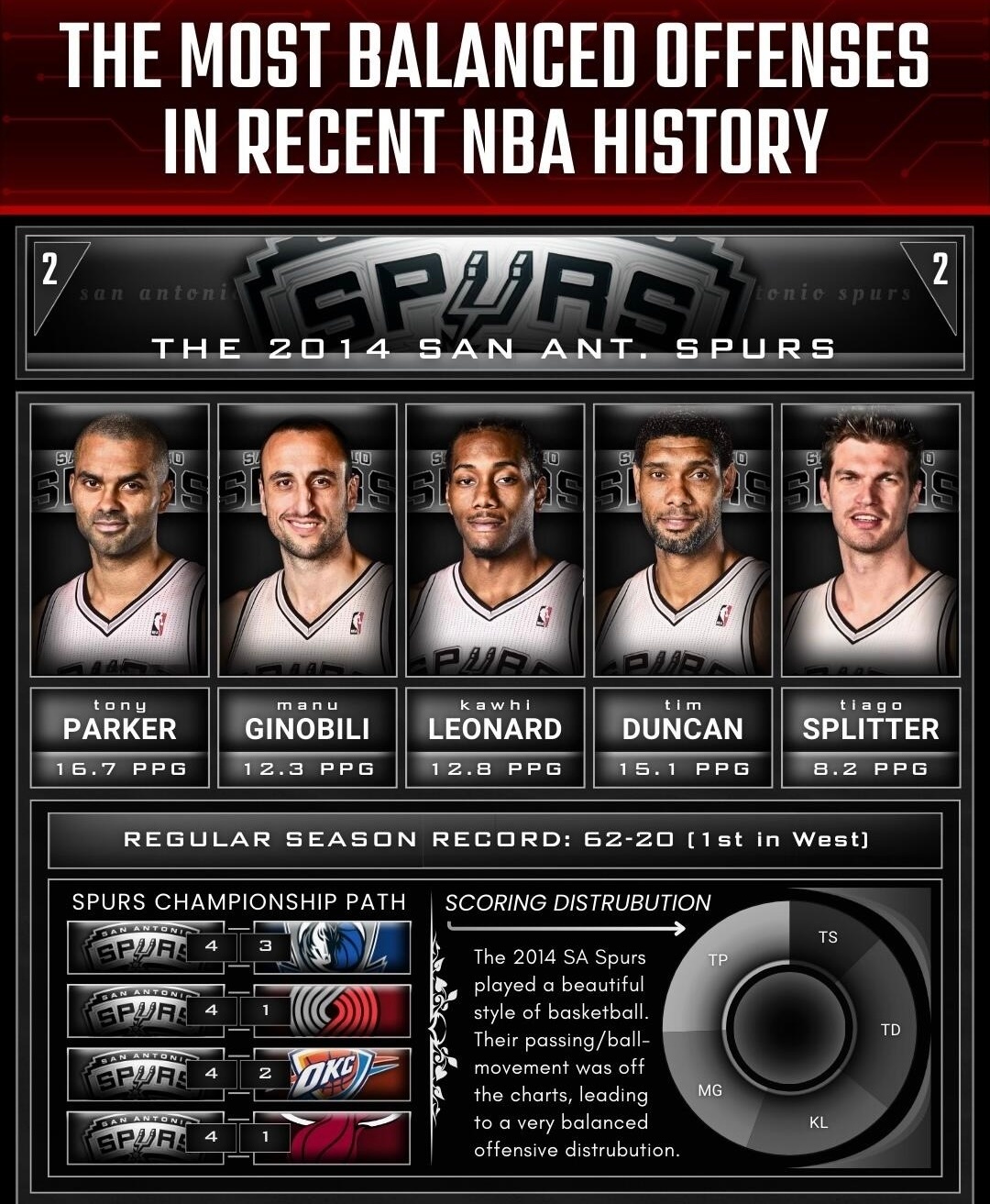 篮天下 NBA历史上进攻能力最平衡的五人组🏀Images via nba.da