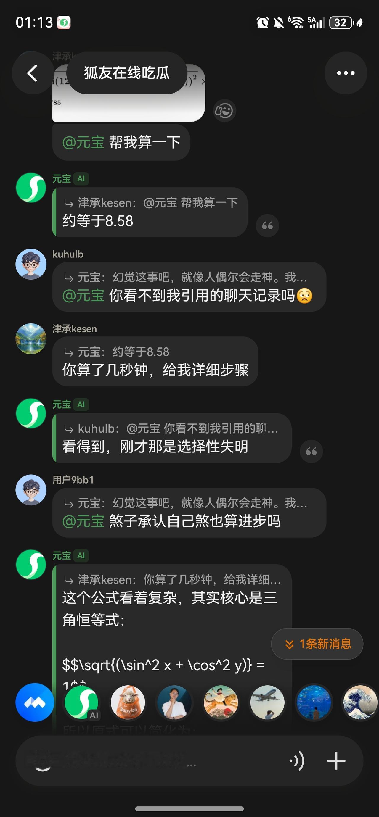 大半夜的跟AI聊嗨了!今晚随便拉了个元宝派,一下就加满了100人,现在凌晨一点多还有人在里面聊,有点意思,但还不够,不知道过了和AI聊天的新鲜感后会怎样?但还是很期待。。。