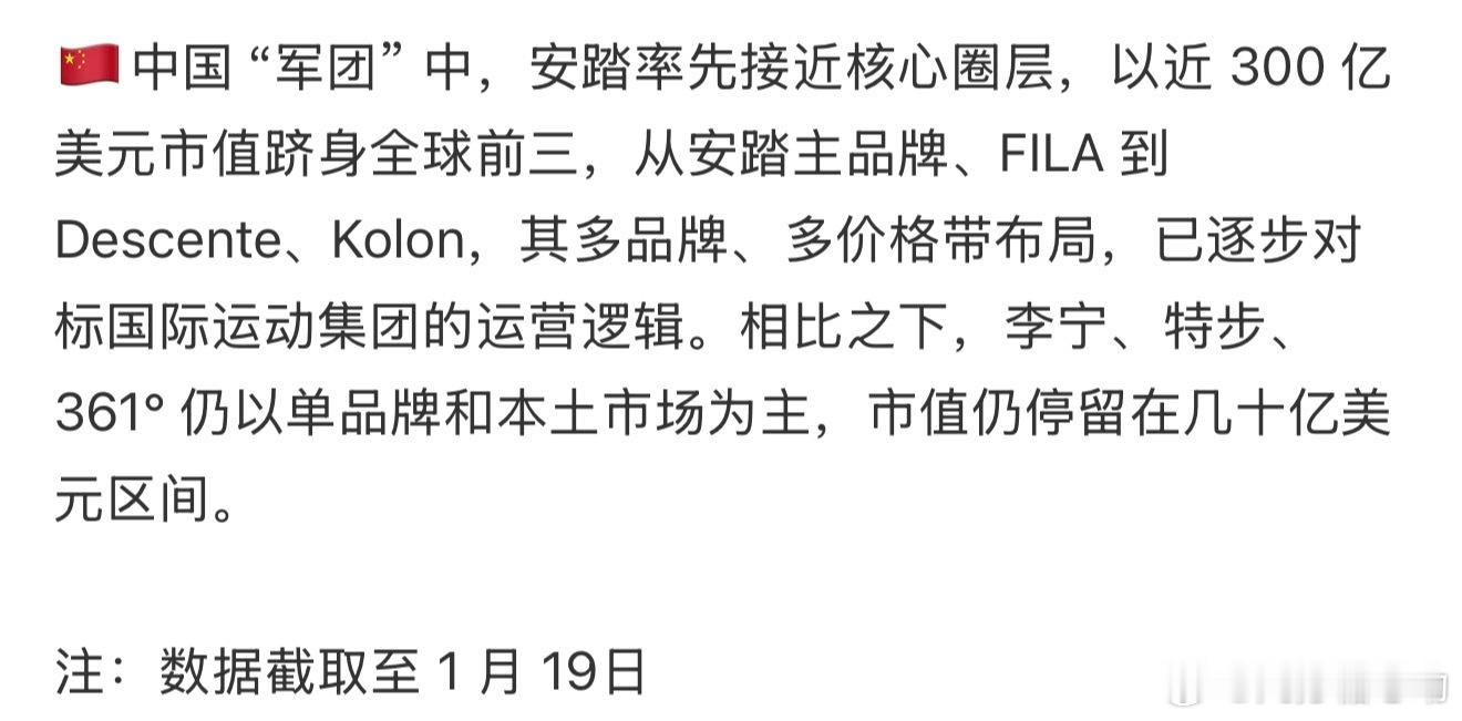 安踏很牛啊 全球第三 全球运动巨头前六唯一中国品牌