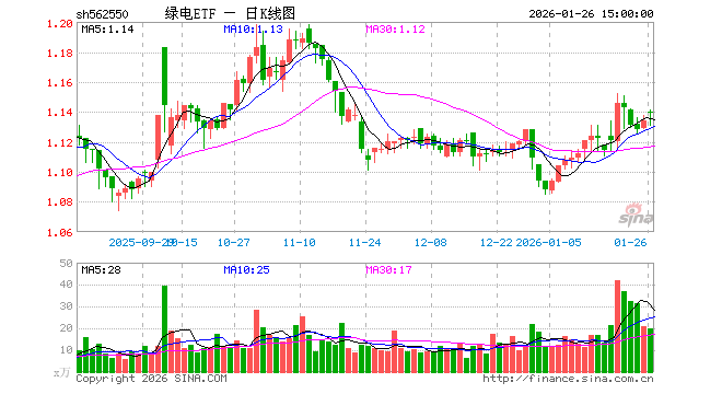1月26日,绿电ETF(562550)涨0.44%,成交额2271.41万元。当日份额增加300.00万份,最新份额为3.54亿份,近20个交易日份额增加1.09亿份。最新资产净值计算值为4.02亿元。