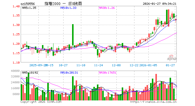 1月27日,中证2000ETF增强(159556)开盘跌1.12%,报1.322元。中证2000ETF增强(159556)重仓股方面,鑫科材料开盘跌0.47%,神剑股份跌0.09%,精工钢构涨0.00%,华联控股涨0.16%,三维通信涨2.10%,天汽模跌0.65%,东方电热涨0.72%,青松建化跌0.44%,北京利尔涨0.45%,嘉元科技跌1.49%。