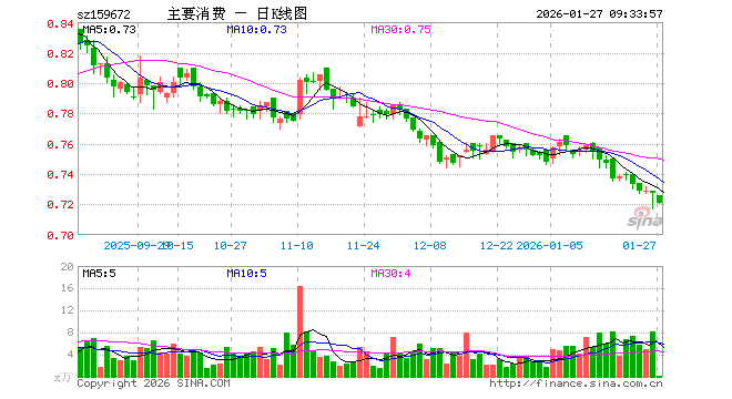 1月27日,主要消费ETF(159672)开盘跌0.14%,报0.726元。主要消费ETF(159672)重仓股方面,伊利股份开盘涨0.04%,贵州茅台涨0.22%,牧原股份涨0.00%,五粮液跌0.21%,温氏股份跌0.19%,泸州老窖涨0.15%,山西汾酒涨0.36%,海天味业跌0.03%,东鹏饮料涨0.47%,海大集团跌0.12%。