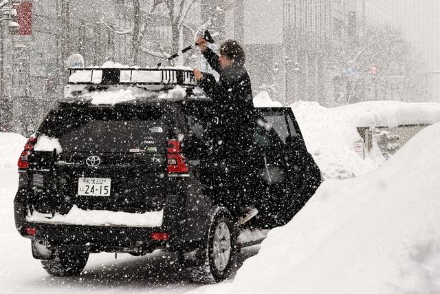 当地时间2026年1月26日,日本北海道札幌,一名男子正在清理其车顶的积雪。视觉中国图