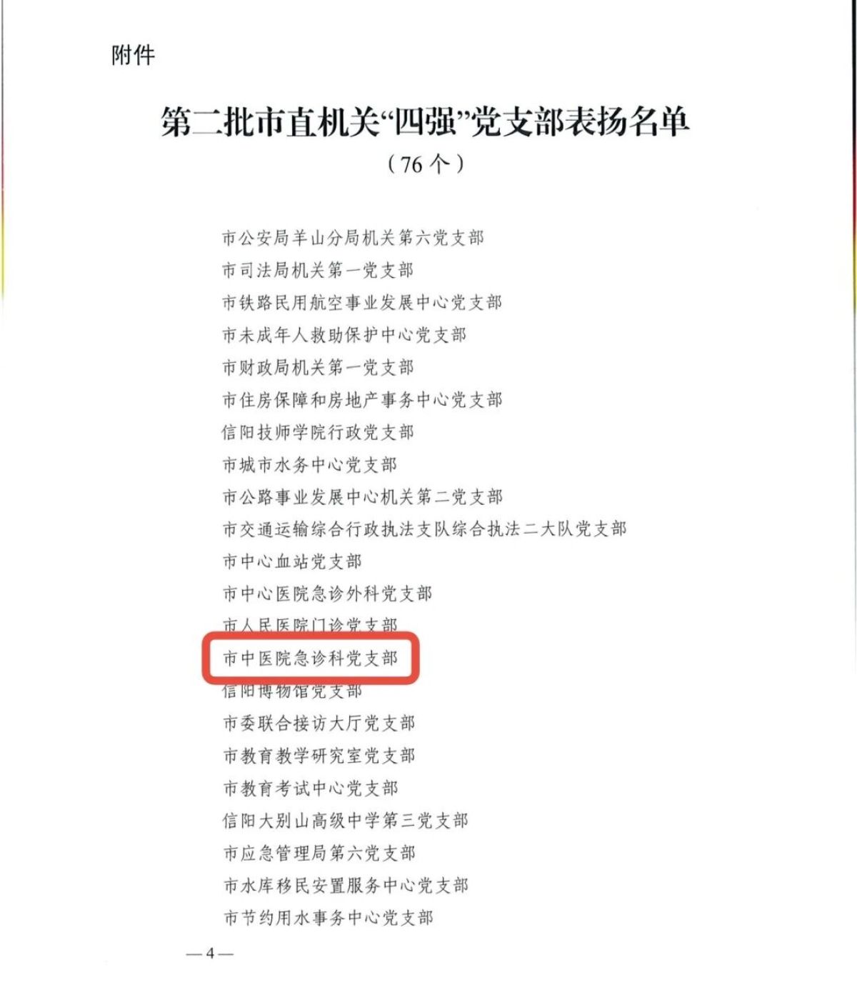 喜报!信阳市中医院急诊科党支部获评市直机关“四强”党支部