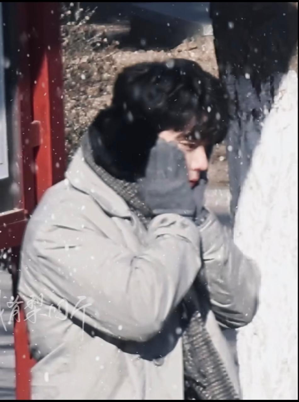 1月27日,肖战《小城良方》路透,今天天气好,只见肖战笑呵呵的小跑上班,在工作人