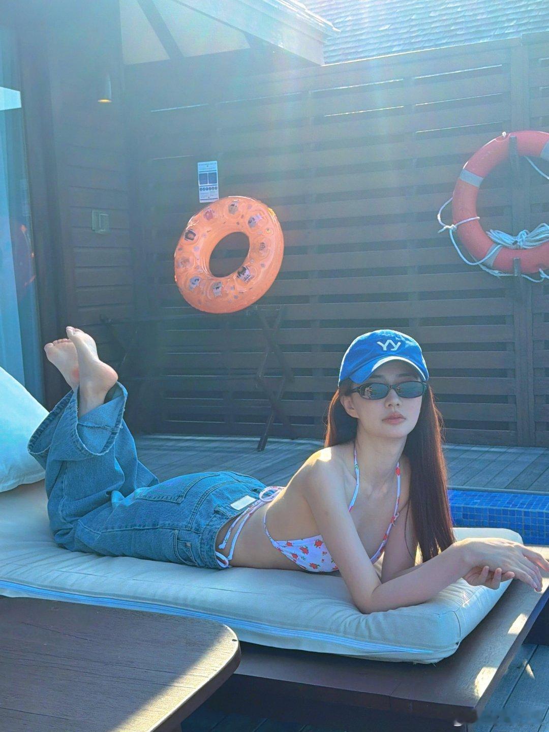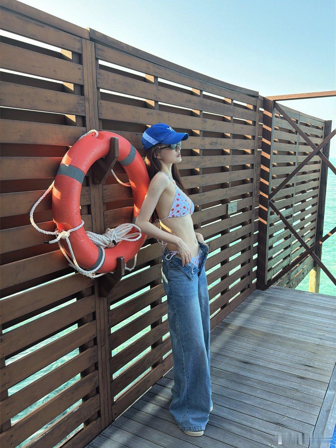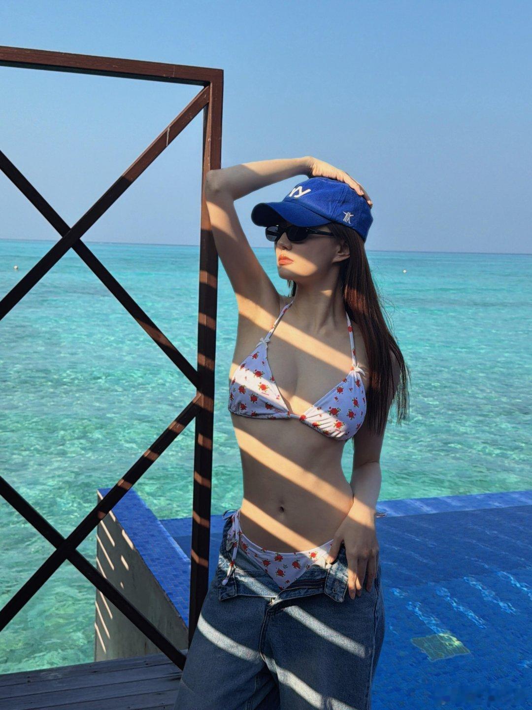 徐璐分享马尔代夫度假泳装照这套泳装肯定很贵,所以要把裤子纽扣解开露出来!