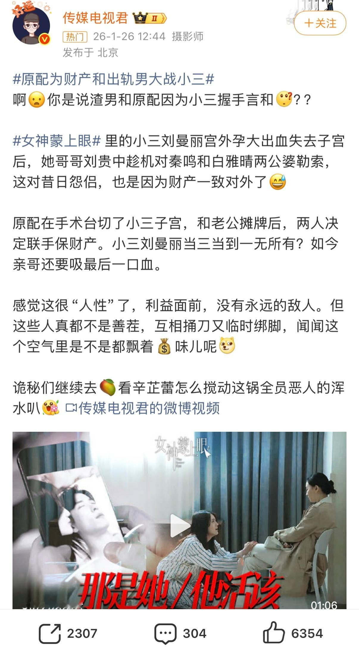 大概只有我一个人在看辛芷蕾的《女神蒙上眼》了,其实剧情算质量中上,演技台词之流畅为剧情加分不少,虽然有些套路但是好在节奏还不错但是不得不说这部剧的宣传真的好雷人,比如第二个案子宣传的词条是图中这两个,我想大部分观众看到还以为是什么撕小三的狗血剧情但是其实是丈夫两边瞒,甚至利用自己医生的身份故意想堕掉和小三的孩子,而原配才是那个即使知道对方是丈夫的出轨对象,也依然遵守了医生的职业操守,把小三从生死线拉回来的人在利益道德和感情的挣扎中,最后是两个女人携手把男方送进了监狱,也都获得了应有的补偿和重新开始的人生我刷到一些因为这个词条就吐槽这部剧的,但是其实剧里塑造了很多样的女性角色我真无力了,剧方怎么想的