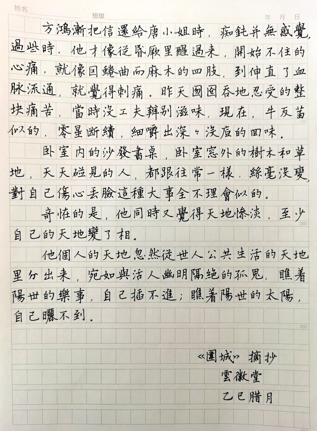 硬笔手抄钱钟书经典小说《围城》(六)