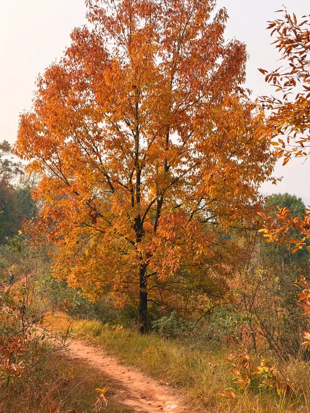 上元古道位于都江堰市原中心镇中皇观与上皇观之间,这里有成片的杉树林、竹林、巨石、梧桐树,随着气温变化,彩林色彩日渐浓郁。