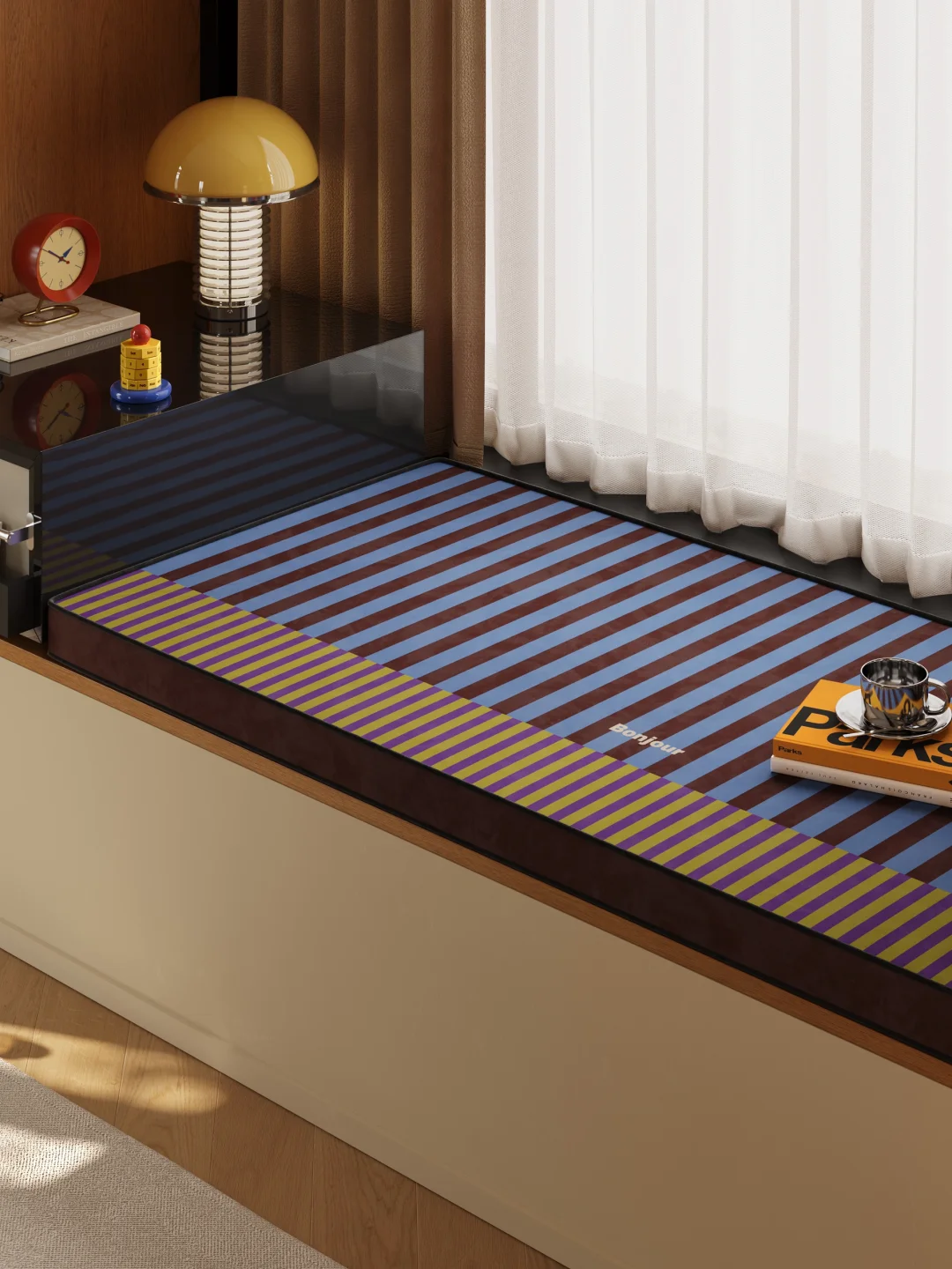 来自时尚秀场的经典条纹元素 混搭包豪斯复古撞色 极富线条美感与节奏韵律 打破飘窗区沉闷与单调 铺出格调十足的中古风治愈角落 适配中古风 / 现代轻奢 / 韩系装修 一垫解锁 ins 博主同款飘窗 - ✅在飘窗铺上这款软垫,绒感亲肤抗造,实用又有质感; ✅恰到好处的厚度坐靠松软不硌骨,而且完全不挡窗; ✅底部自带防滑纹理贴地不打滑,躺卧安心,好看又好用!