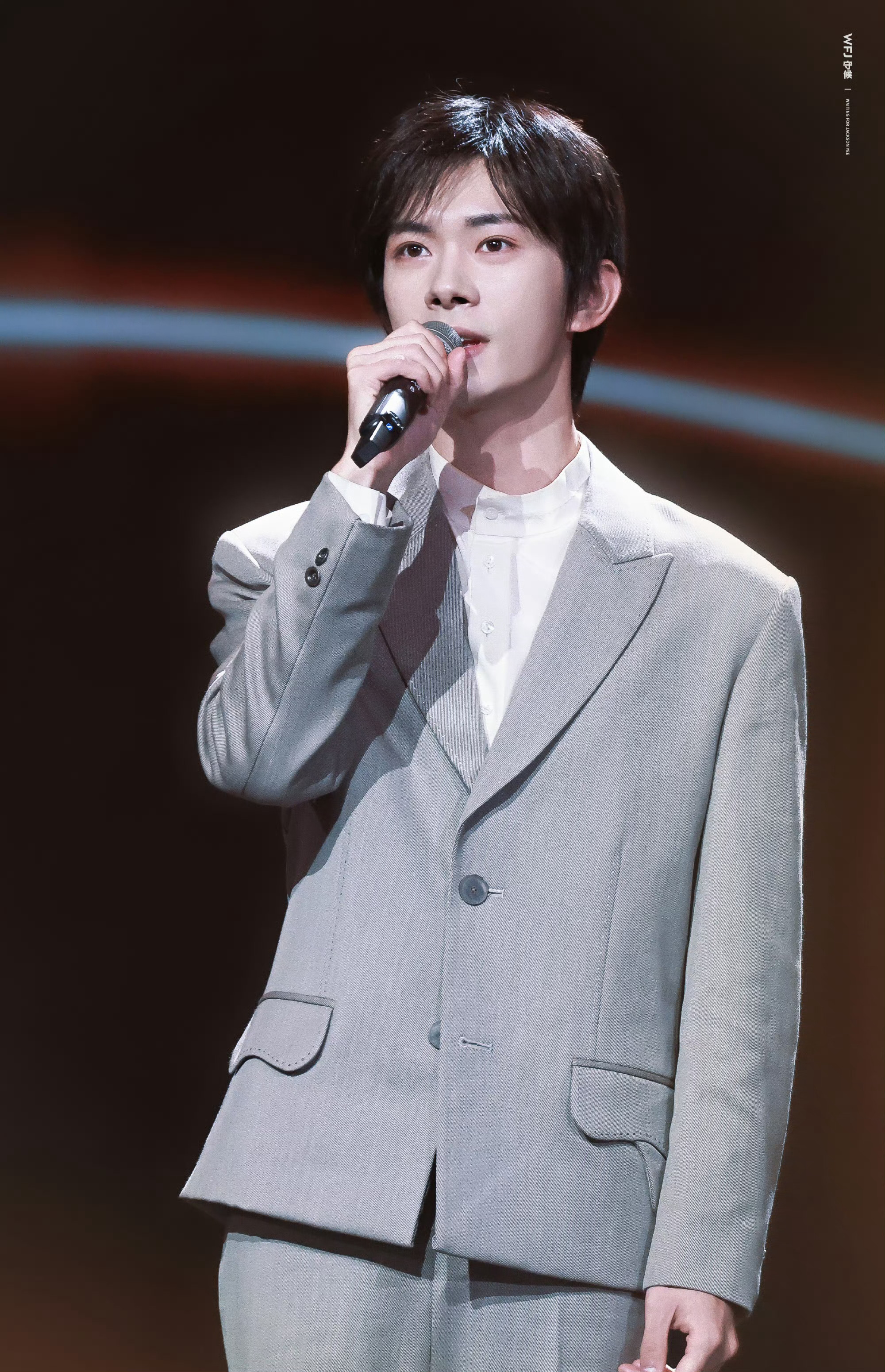 易烊千玺 造型易烊千玺在百花迎春晚会发表演讲时,以简约的白色西装造型亮相。他在分