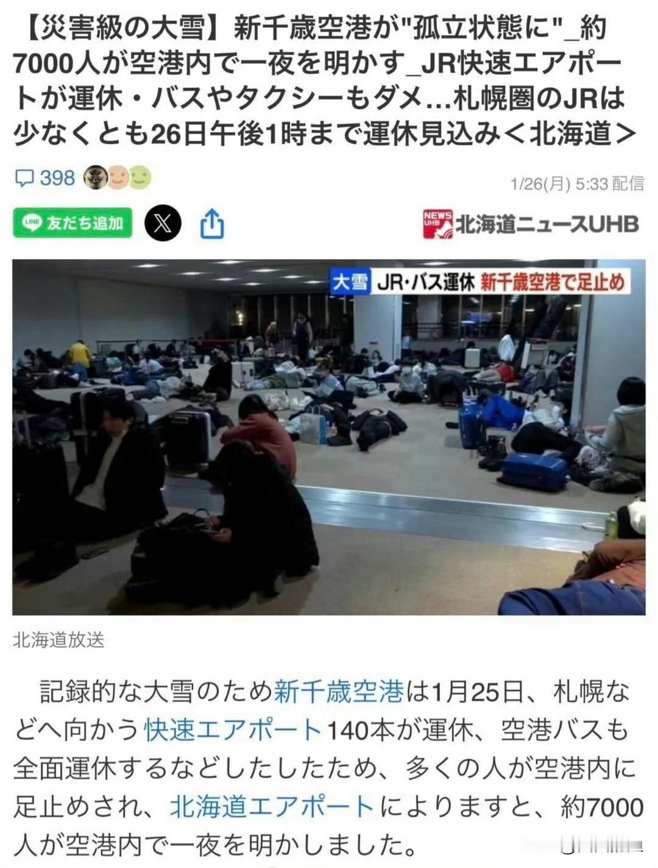日本北海道暴雪来袭,机场直接“罢工”,7000多人瞬间被困!中国游客们原地懵圈:行李箱当枕头,地板当床,泡面成了“救命粮”,机场秒变“大型避难所”。 更惨的是,航班取消通知响个不停,手机电量告急,孩子哭声此起彼伏,大人们满脸绝望。最扎心的是,早前国家反复提醒风险,现在倒好,机票抢不到,语言不通还遇暴雪,简直“雪上加霜”!滞留的游客终于绷不住:“这哪是来玩,分明是来受罪!再也不来了!”劝大家一句:旅行前,先把安全放首位,别让说走就走的任性变成“有去无回”的狼狈!