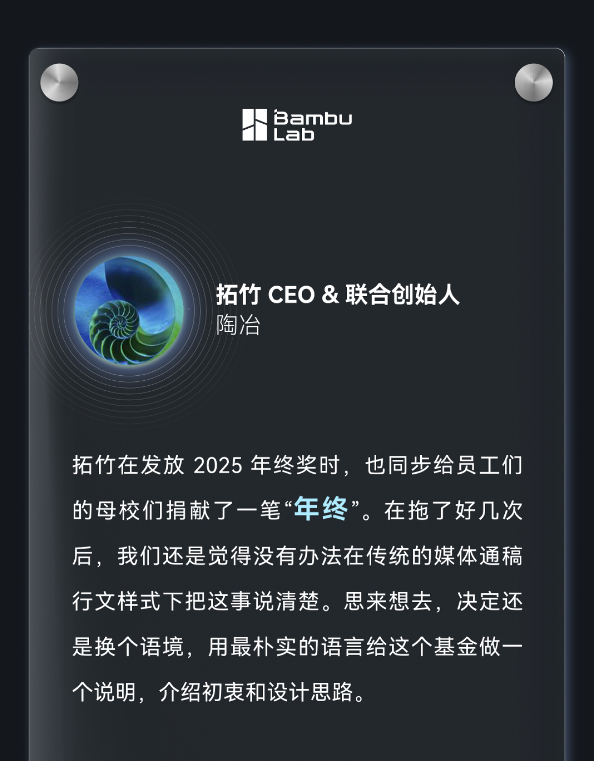 近日,成立仅五年的3D打印机企业拓竹科技宣布,将向十所高校捐赠总额一亿元人民币的“母校基金”。