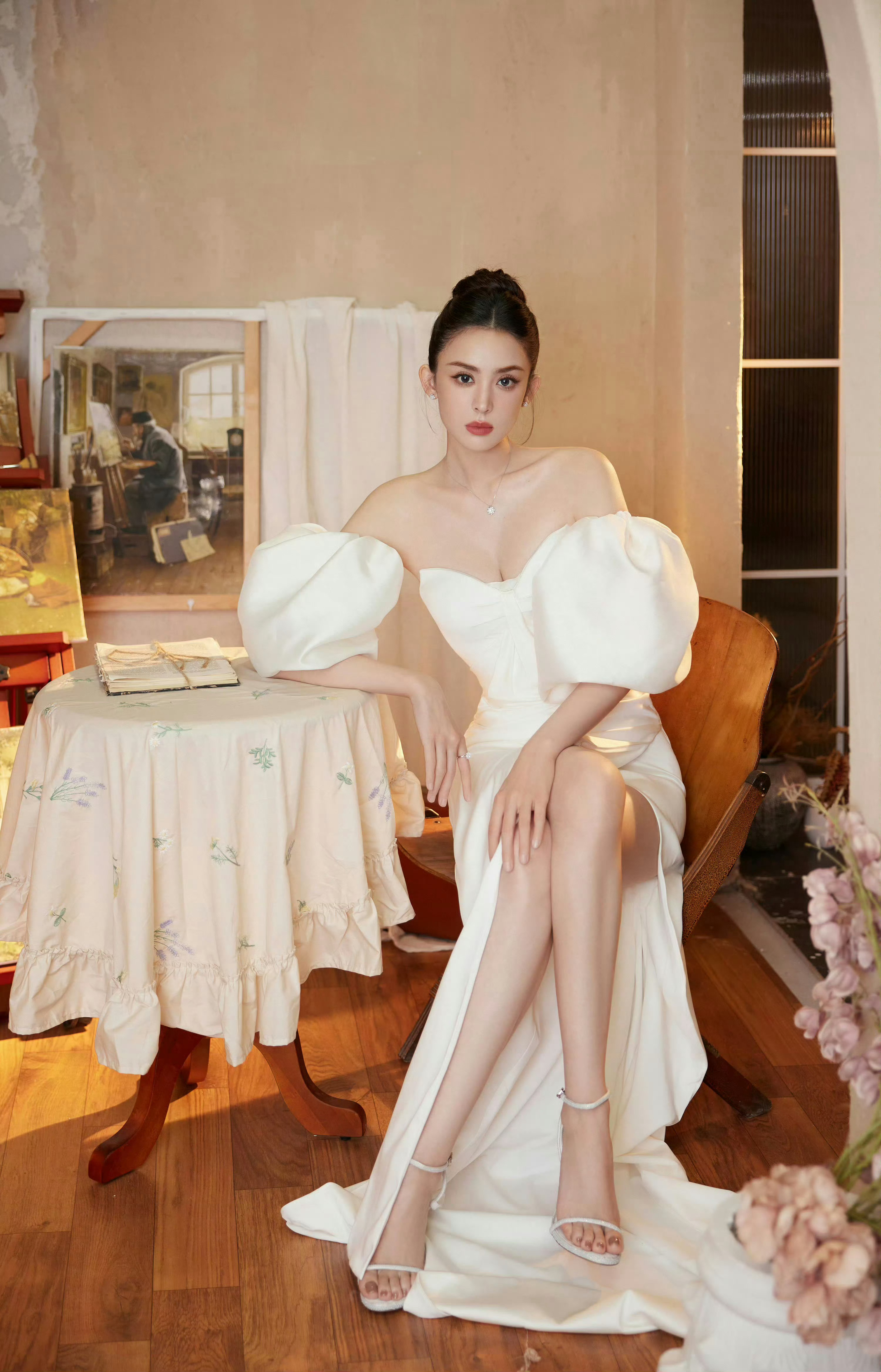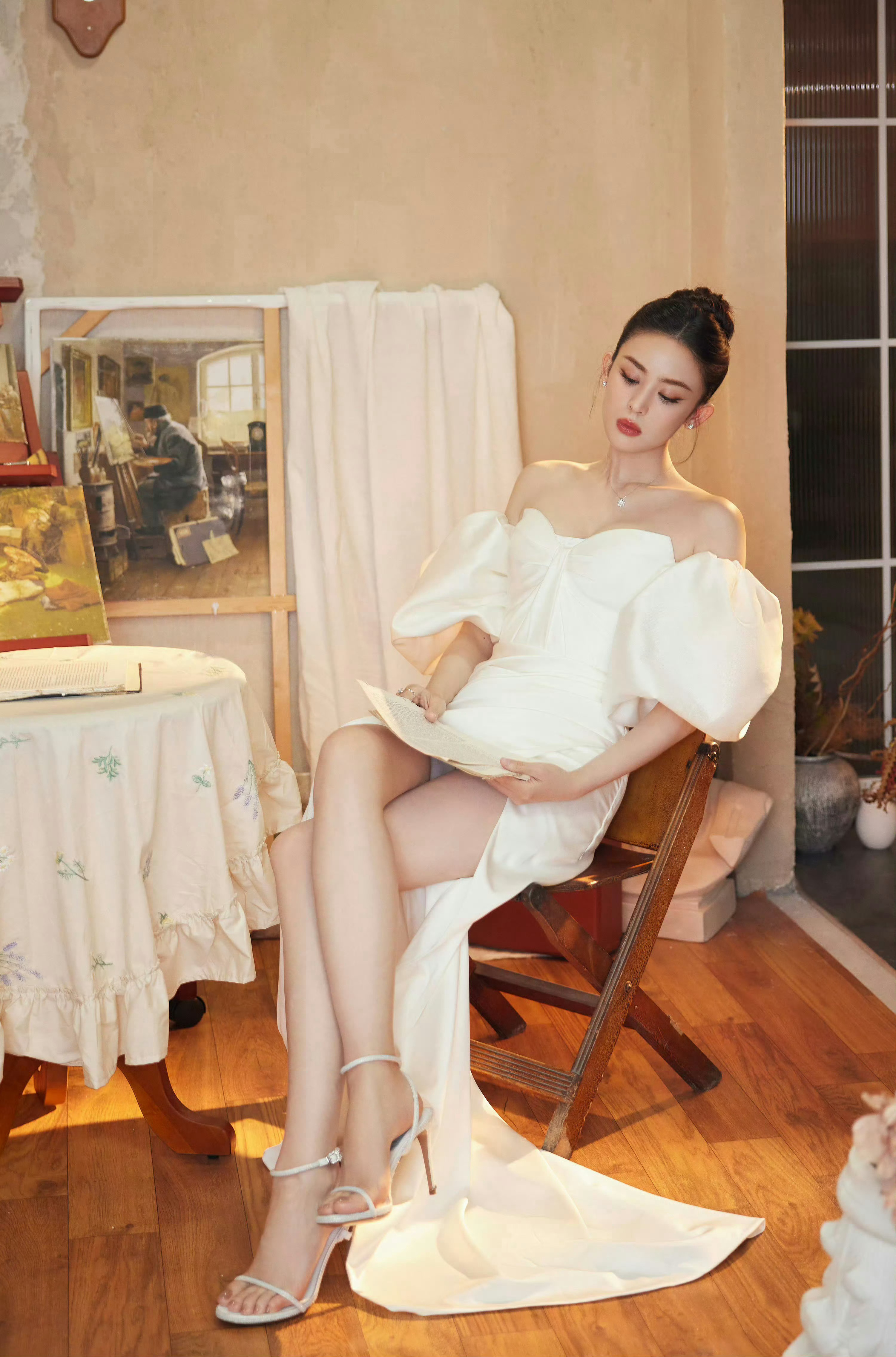 叶蒨文又发工作照啦,这一次她身着紫色抹胸长裙,一双大长腿十分吸睛,身材匀称得让人