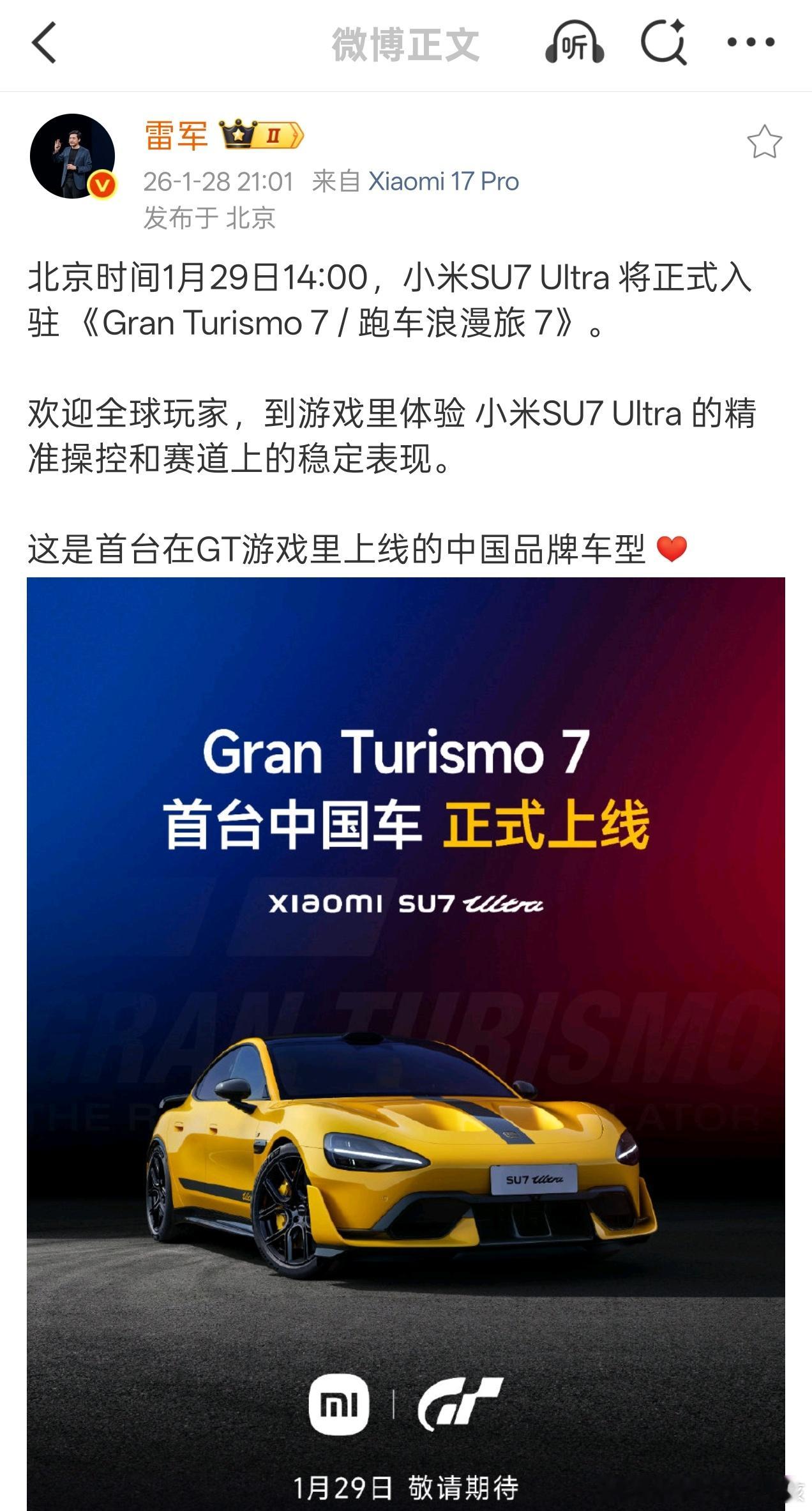 小米SU7Ultra上线GT7刷到小米SU7 Ultra登陆《GT7》的游戏预告直接起立!这还原度绝了,铝盖非挖孔版看着就帅到炸,盲猜游戏里肯定能选碳盖和赛道套装吧?看大家猜价格我也来凑个热闹!艾尼氪5N 650马力卖8.5万CR,特斯拉Model S Performance都到9.2万了,SU7 Ultra这性能不得更猛点?按马力和价值比,说不定真比特斯拉还贵点呢~毕竟GT面向全球玩家,这定价说不定还藏着Ultra未来出海的真实价值?!你们说有没有道理