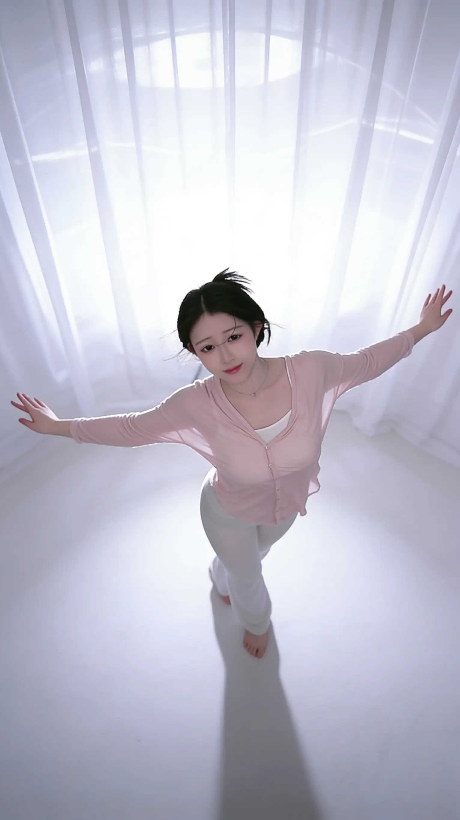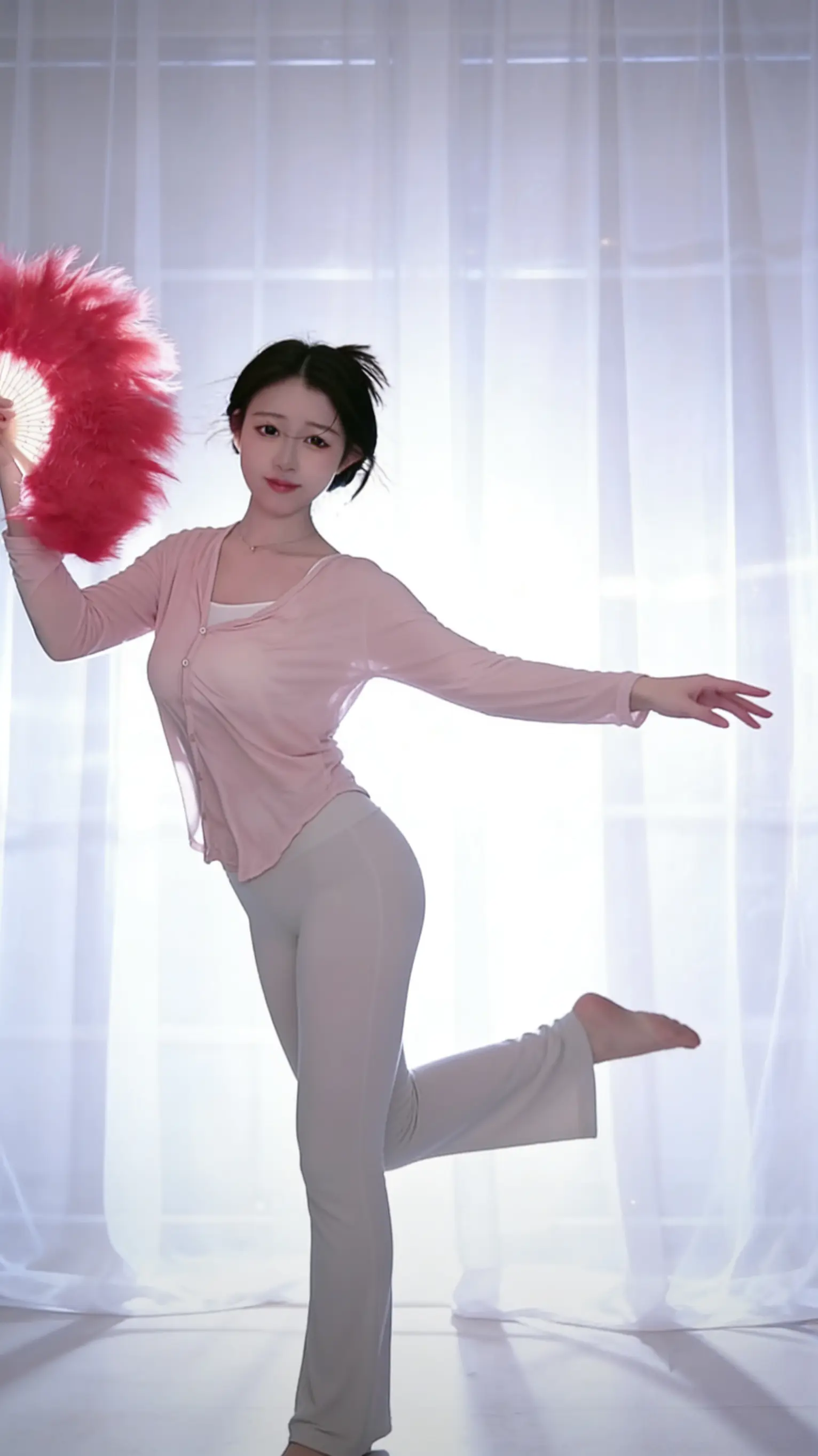这是金晨在排练交谊舞,舞姿很优美。这舞蹈的难度够大的,要是没有专业的功底,跳