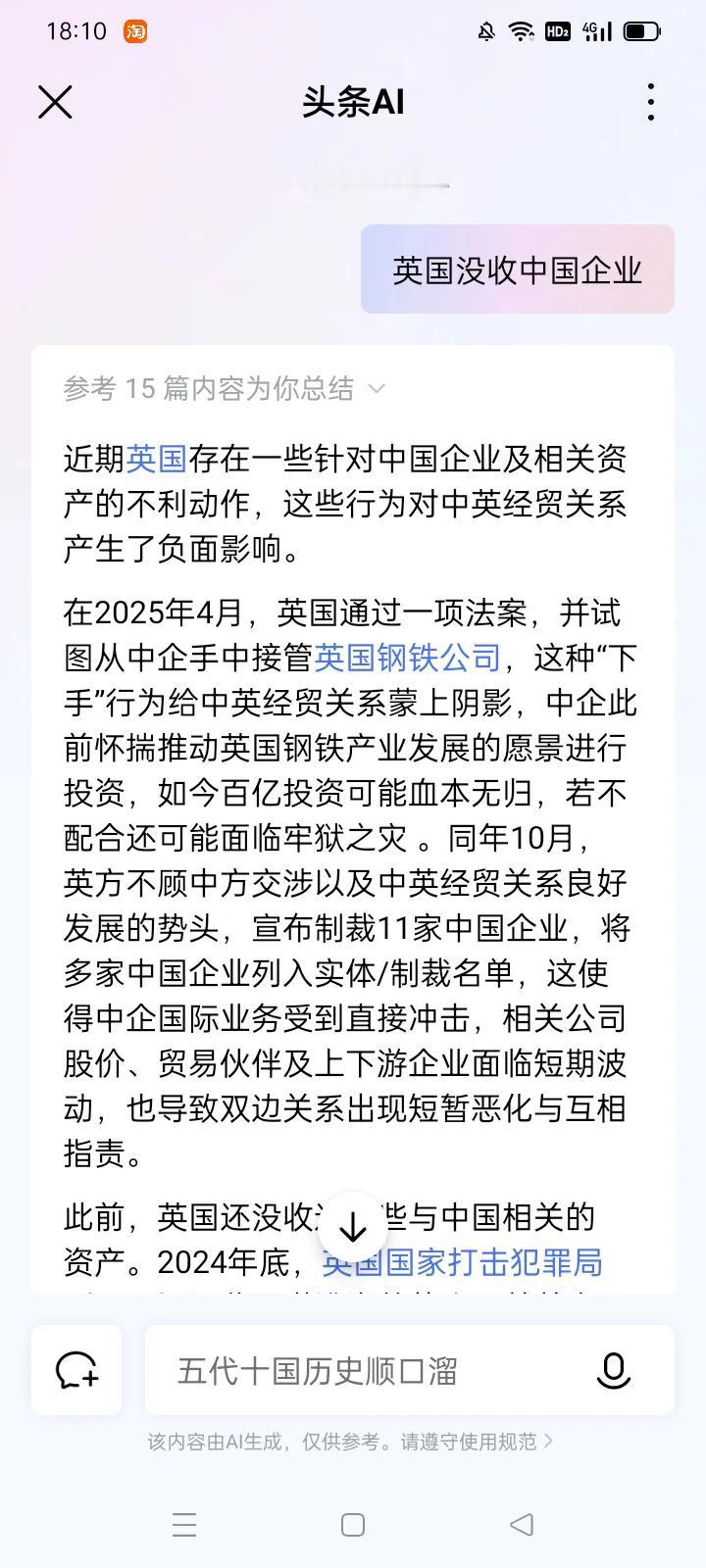 英国不能一边发中国的财,一边砸中国的锅! *特朗普的关税贸易大棒,让英国很受伤。再加上经济科技衰退,英国人有点饿了。于是又两眼放光地瞄准了中国! 其实英国与美国是‘一个愿打一个愿挨’,英国也不穷,因为它购买了近9000亿美元美国国债。 斯塔默直言不讳地说‘英国需要从中国获得经济利益’。他带来了空客飞机 汇丰及渣打银行 制药公司 捷豹路虎等等高管,要在中国扩大深入发掘经济利益。 *中国的和平共处五项原则要求互相尊重领土主权和平等互利! 但是英国却一再侵犯中国的主权和经济发展权益! 1英国配合美国和欧盟,屡次干涉台湾问题,支持反中乱港分子、破坏香港繁荣稳定…… 2英国利用国家暴力,强制要求中国企业出卖持有的英国某个芯片公司80%多的股权! 又强迫闻泰科技子公司安世半导体持有的英国另一家芯片企业86%以上的股权! 英国政府还要几乎没收中国企业投资了上百亿美元扭亏为盈的英国钢铁公司! 而这三个强取豪夺的事件,英国官方的借口都是所谓的‘保护国家安全’! 同时英国政府还违法制裁了数十家中企,严重侵犯了中国的经济权益。 *英国的服务贸易也在中国大发横财。 比如汇丰银行 渣打银行拥有发行港币的权利,现在这两家银行的股价如日中天,富得流油。 目前中国有15万多留学生在英国,英国这两年已经大幅度提高了针对外国人的学费、来补贴本国学生。 *我觉得我们应该要求英国明确答应它从中国发财的几个前提条件: 一、英国必须承认中国拥有使用一切必要手段统一台湾省的权利! 二、英国不能损害投资英国的中国企业的正当权益。 三、英国保证不干涉中国内政。