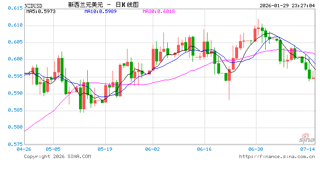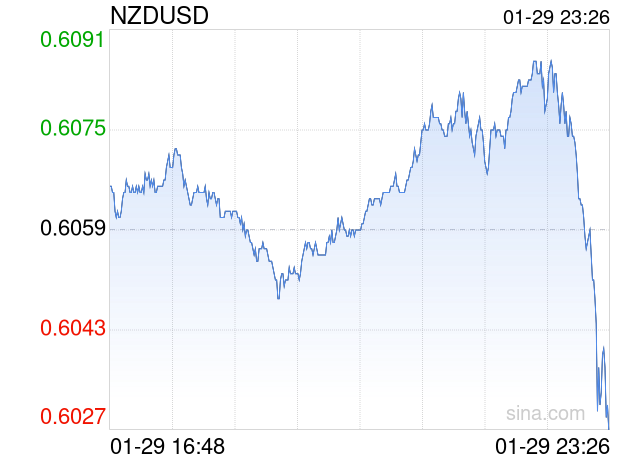 新浪外汇消息2026年01月29日,截至23时26分,外汇市场上新西兰元兑美元汇率跌破1新西兰元兑换0.6026美元。跌幅为-0.5446%