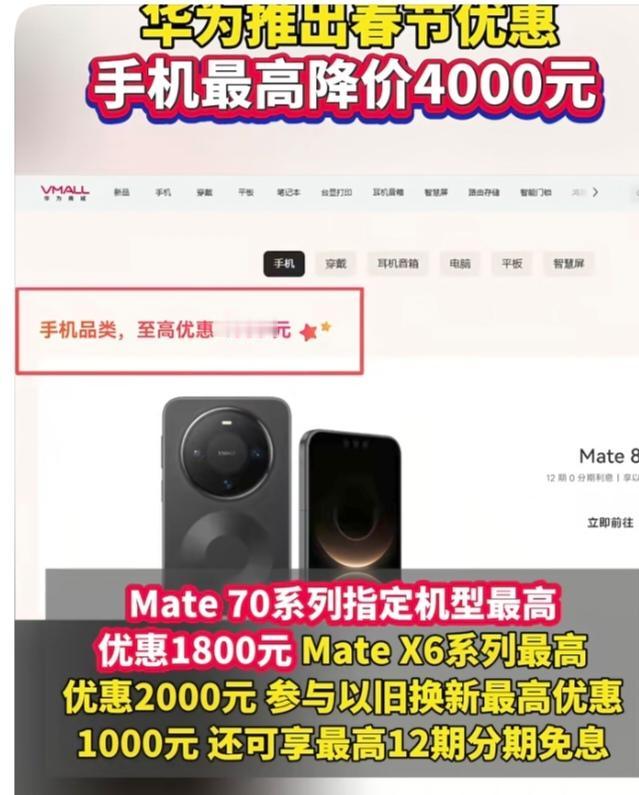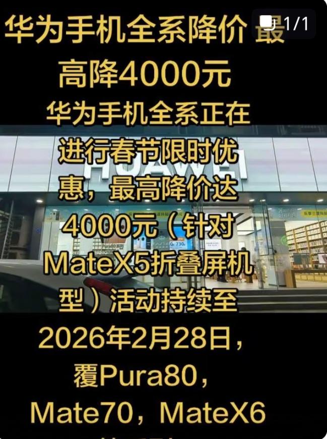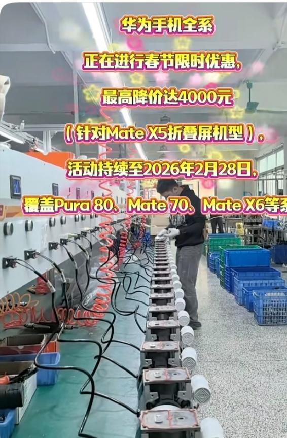 华为2026年春节限时促销核心信息总结 1. 活动基础信息:活动时间为2026年1月29日至2月28日,覆盖华为手机及全生态产品,综合优惠力度大,还可叠加多重福利。 2. 核心优惠内容 - 直降幅度:折叠屏Mate X6系列最高直降2000元,全能旗舰Mate 70系列最高直降1800元,影像旗舰Pura 80系列最高直降1500元;Pura X折叠屏此前已调价,标准版优惠后6899元起。 - 叠加福利:参与以旧换新最高额外优惠1000元,支持最高12期分期免息;部分机型可叠加国家消费电子补贴(按标价15%补贴,上限500元,需通过云闪付领取当日使用)。 3. 覆盖产品范围:手机涵盖Mate80、Mate70、Pura80、Mate X6、Pura X、nova15、Mate XTs系列;生态产品包含华为手表、耳机、平板、PC、智慧屏、路由等。 4. 适合入手人群:手机性能/续航不足的刚需用户、追求高性价比的实用派、已拥有华为设备想体验鸿蒙生态协同的用户。 5. 选购注意事项:国补资格券需当日领取使用,活动2月28日结束,热门机型可能缺货;部分优惠(如以旧换新与限时折扣)可能无法叠加,下单前需确认规则;官方渠道(官网、线下店)售后有保障,电商平台或有额外补贴,可按需选择。