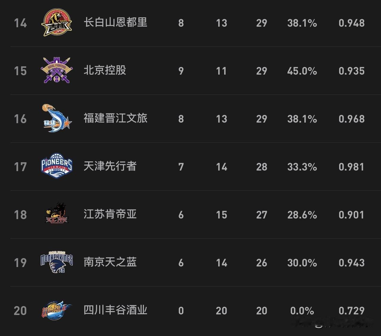 CBA最新积分榜,昨晚CBA结束了新一轮的比赛, 浙江广厦、广东男篮、上海男篮、山东男篮排名前四,而本赛季表现一般的“辽晋一家亲”纷纷输球,上一场大胜四川的辽宁男篮本轮客场对阵宁波队,结果辽宁62-75历史上首次输给宁波队,而山西男篮虽然引进了新外援,但是效果看着还没有被裁的诺威尔好用,最终山西再次输球,吞下4连败,目前“辽晋一家亲”一个排名第十,一个排名第十二,在季后赛附加赛中徘徊,要知道这两支球队上赛季都进了4强,本赛季成绩下降如此之快,让人唏嘘!辽宁男篮