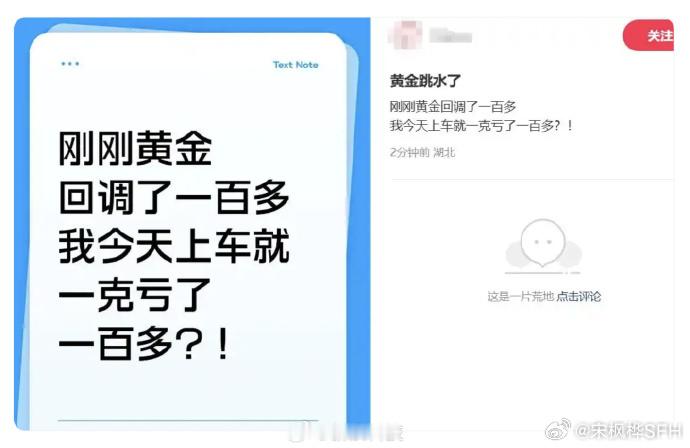 金价暴跌网友称刚上车就亏了 金价一直上热搜,一直心痒痒。这几天一直在关注,所以不
