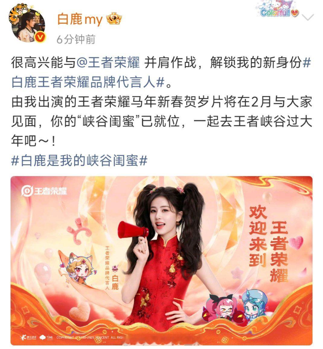 恭喜白鹿官宣王者荣耀品牌代言人,恭喜🎉