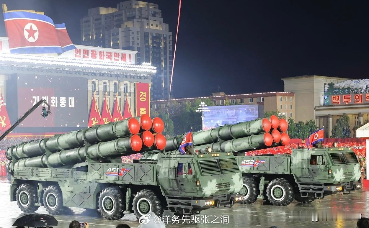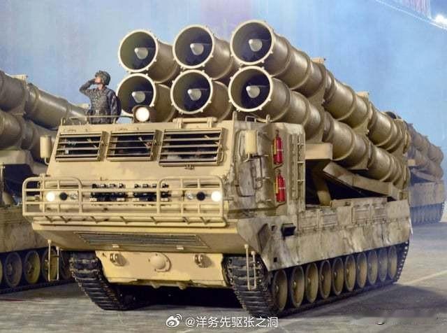 朝鲜目前拿出来过的600毫米的远火已经有5种版本了,履带的,轮式的,4联的,6联