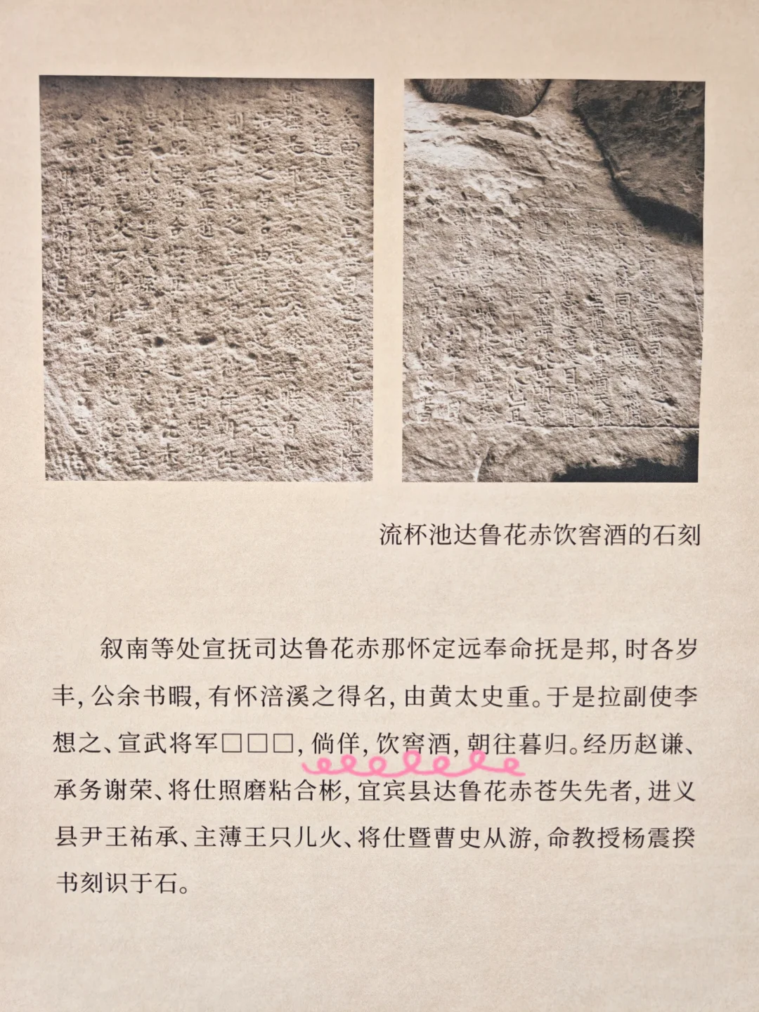 [满月R]宜宾流杯池公园有历代众多题刻,其中有一处元代游赏题刻,位置在“山谷云深”左上角,记录了当地官吏在流杯池游玩一天,文字保存还比较清晰。(图1、2)