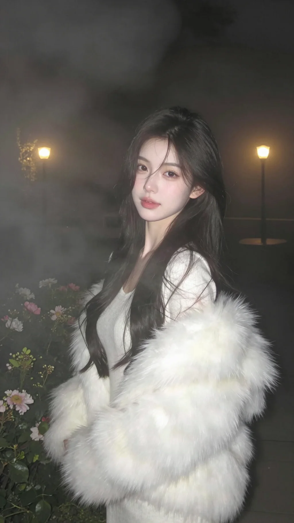 月夜下花丛边的美人儿🌙