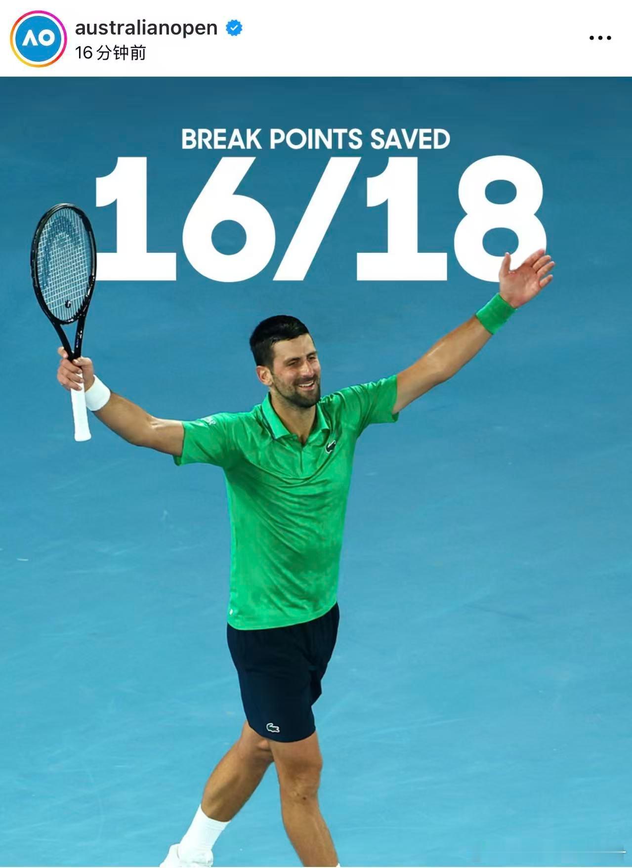 德约科维奇vs辛纳 这一场比赛数据最亮眼的我觉得不是制胜分也不是ACE是破发点挽救数德约科维奇面临18个破发点,挽救了16个!!!这太关键了!