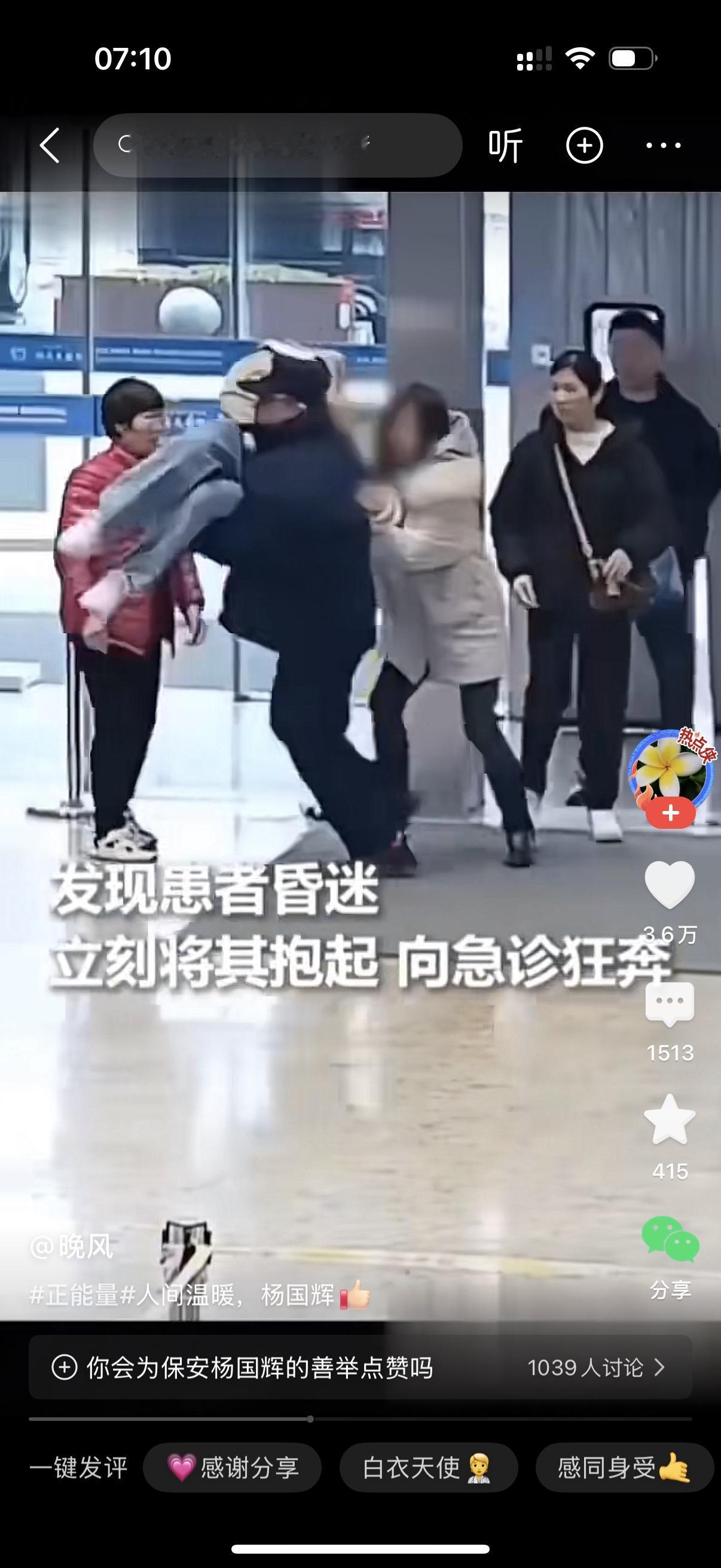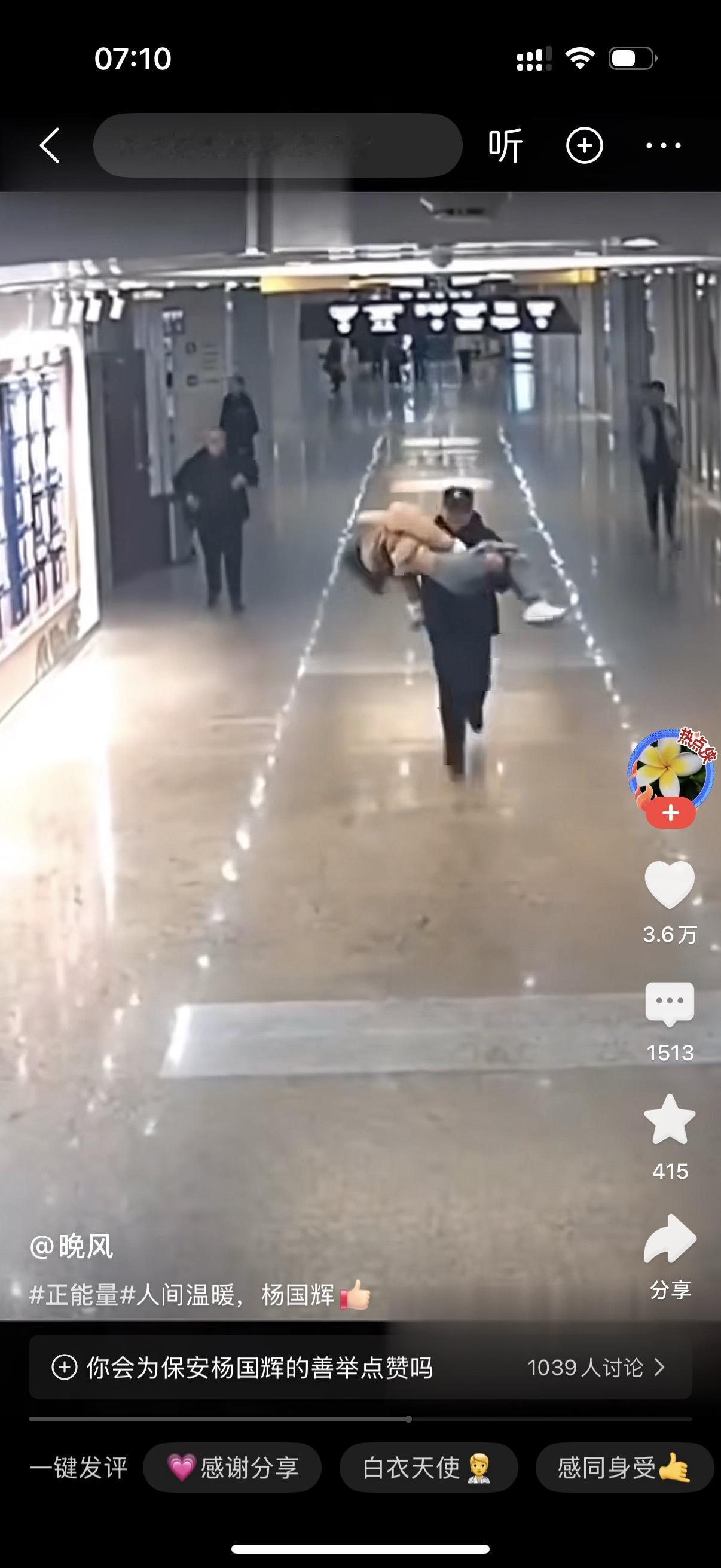 母亲背着女儿刚到医院门口,母亲体力不支,女儿倒地。医院一保安发现患者昏迷,立刻将其抱起,向急诊室狂奔。那可是几十米的长廊,保安不遗余力地抱着女孩,像离弦的箭一样冲刺。他知道对于急诊的患者来说,快一秒钟就是希望。为这样的保安点赞喝彩。