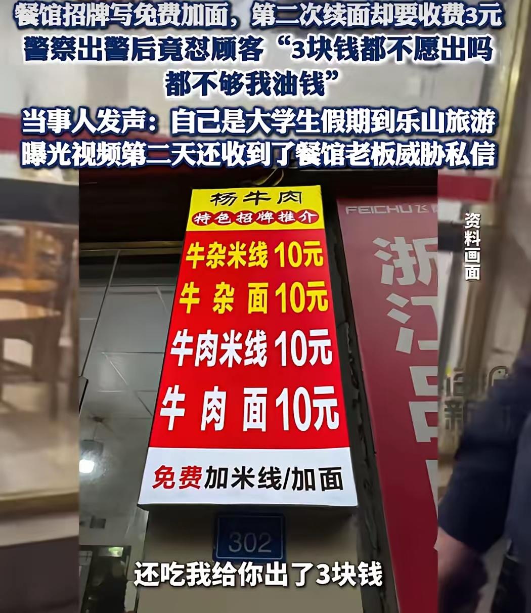 四川乐山续面事件 当事大学生又发视频了 ​仍旧是找了家免费续面的面馆,仍旧是加了二次面,视频中都做了标注,不但给加了面,还给加了臊子,结尾还强加推荐了那家店。 网名也改成了和续面事件相关的字样,明眼人都能看出,这是借着这事继续说话了。 乐山那家面馆的事,官方早有定论,店家因规则模糊被罚,赔了五百还退了十块面钱,学生把这些钱捐了,看着是个利落的结局。 可这事偏就没完。有人说北方人食量本就大,他吃的那些面,换做旁人根本咽不下,可这从来不是食量的问题。 面馆错在没把规则写明白,免费加面的招牌挂着,却藏着仅限一次的潜规则,这是商家的不诚信,该罚,一点不冤。 但学生收了退款,拿了赔偿,事情本就该翻篇了。再发视频对比,改网名蹭热度,味道就变了。 南北方的吃食规矩本就不同,四川的小面馆,免费加面是份人情,北方的管饱是种惯例,本无对错。 可契约精神不是单方面的要求,商家守规矩,消费者也该有分寸。一碗面的事,闹到全网皆知,本就没必要。 十块钱的面钱,是生意思维,也是做人底线,吃了面,本就该付账,这是最朴素的道理,走到哪都没错。 借着一件维权的事,反复拉扯引流,倒让最初的合理维权,失了原本的意义。