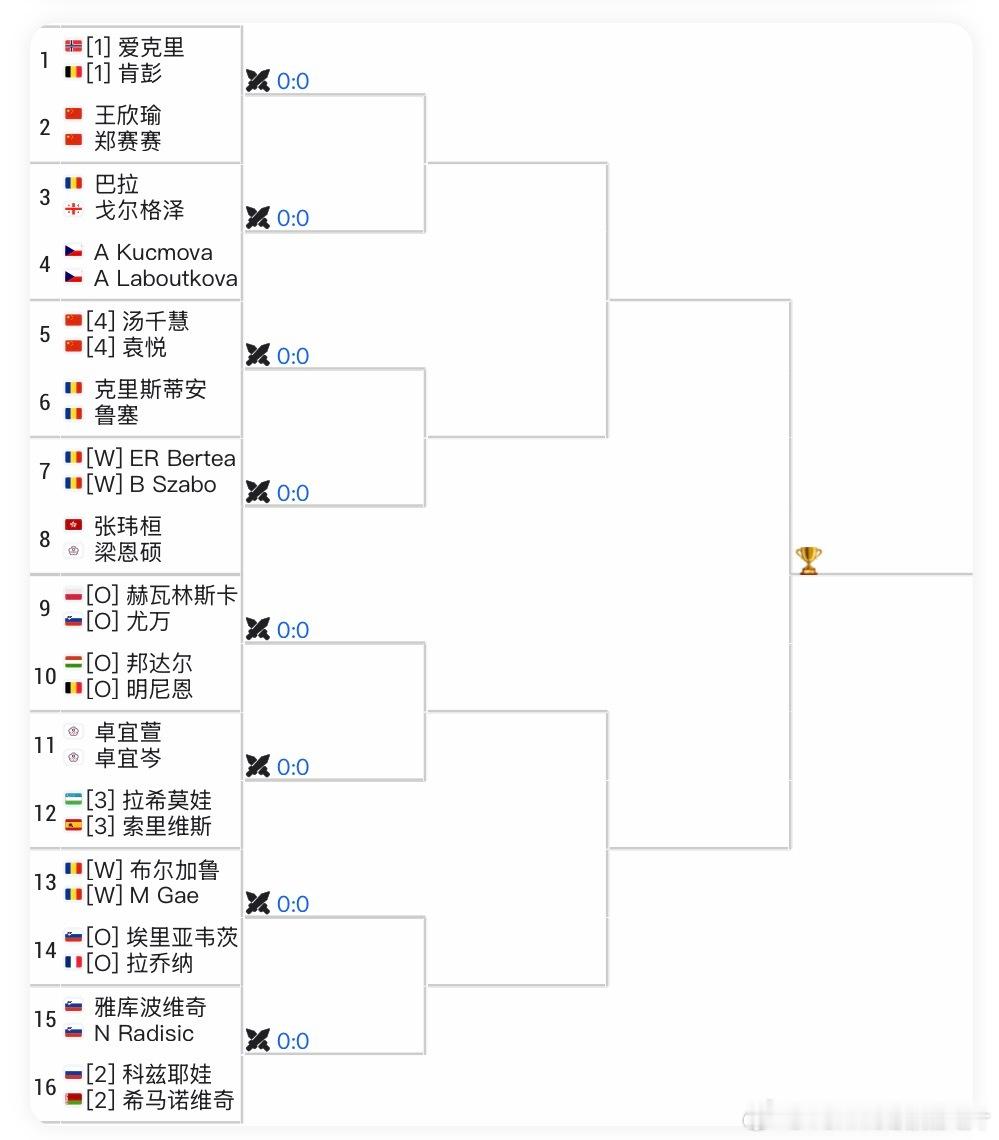 💃🏻💃🏻女双🇨🇳王欣瑜/郑赛赛vs【1】🇳🇴爱克里/🇷🇴肯彭【4】🇨🇳袁悦/汤千慧vs🇷🇴克里斯蒂安/鲁塞