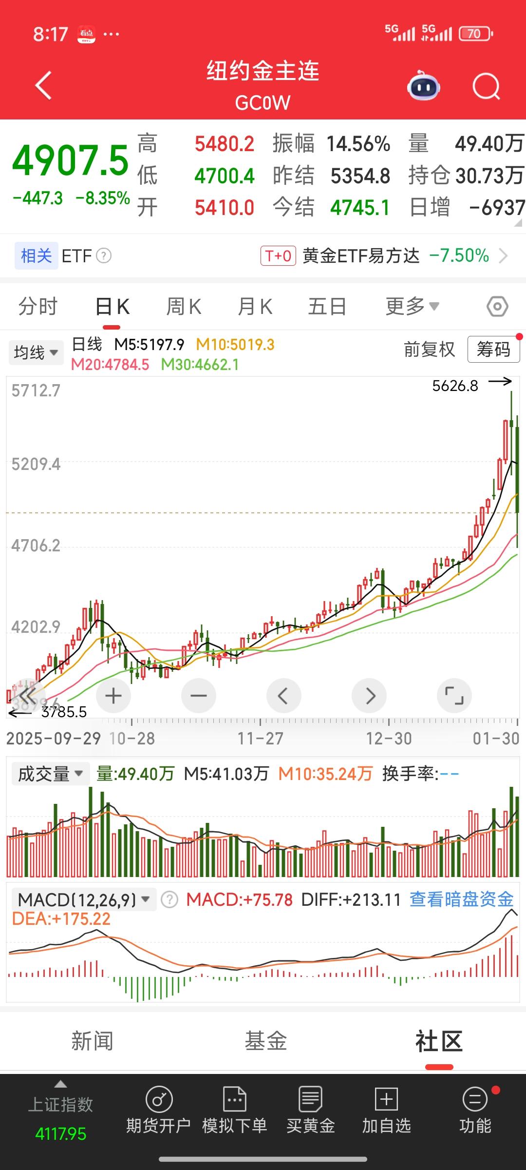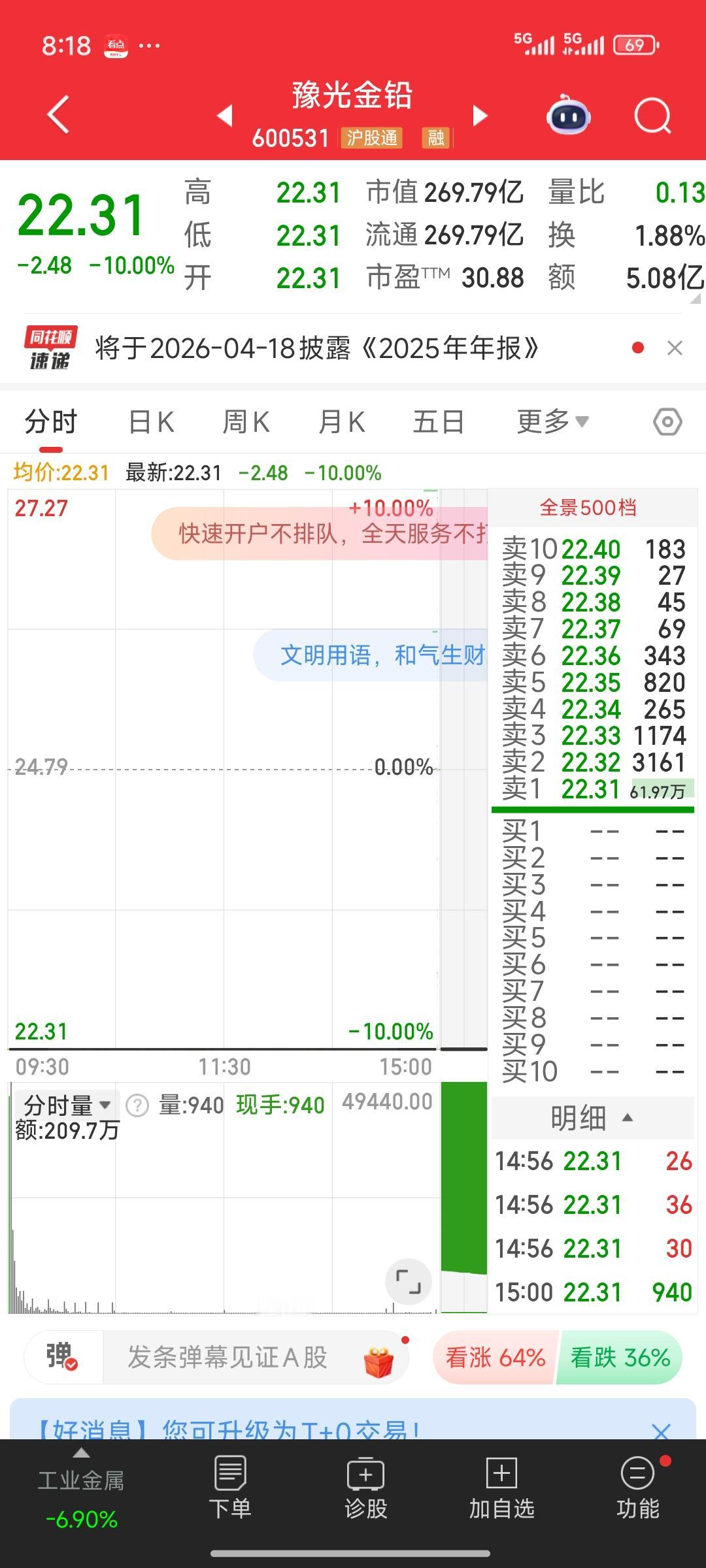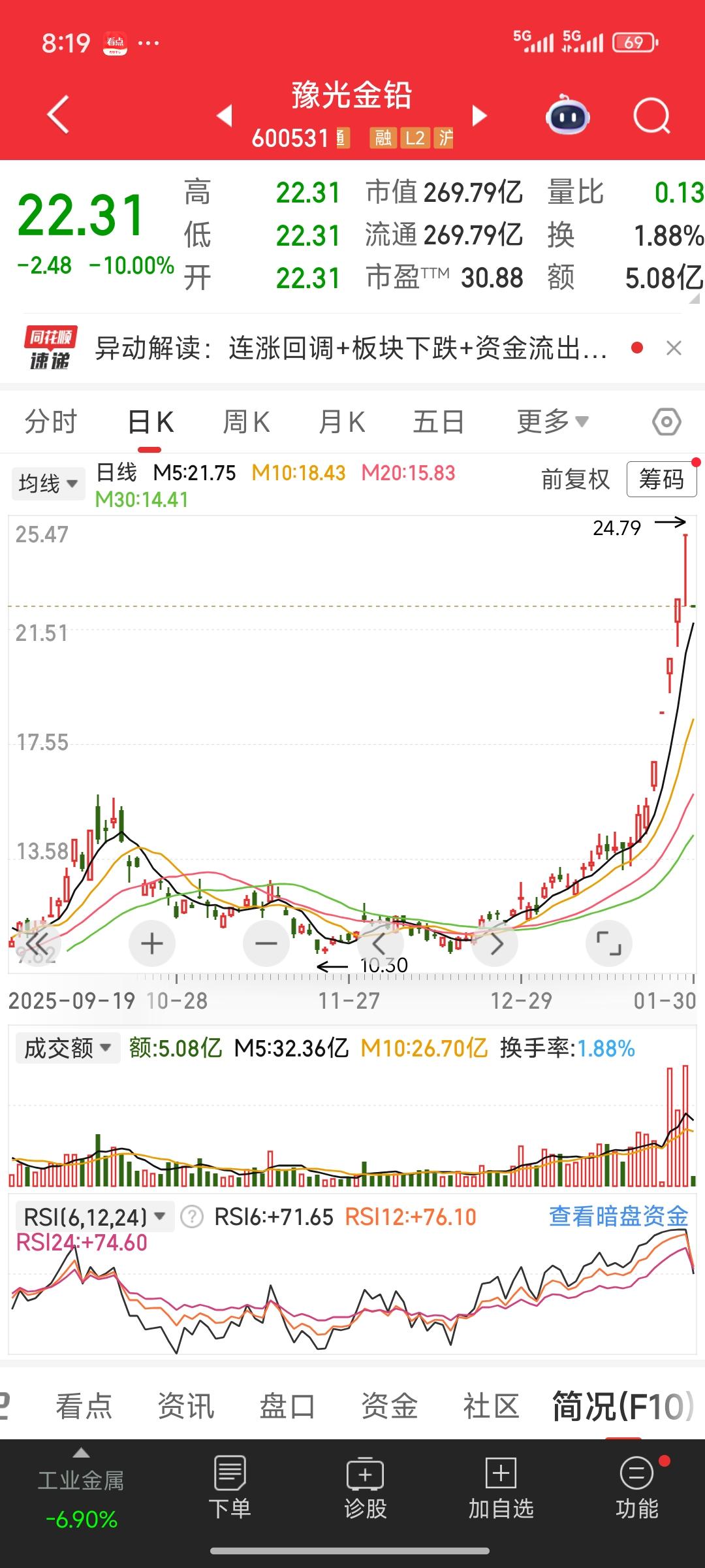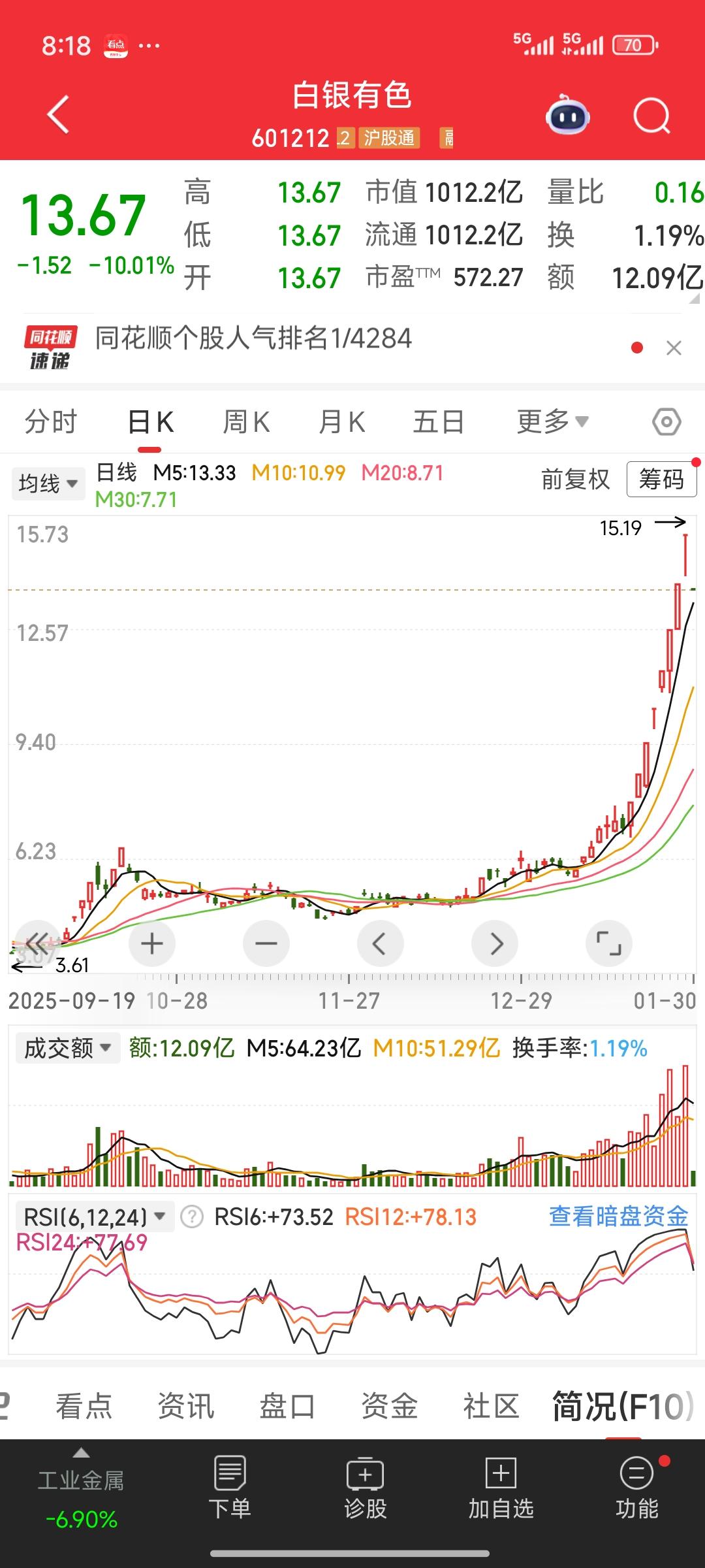 天塌了!天塌了! 期货市场的金银,昨夜在国际市场大幅下跌。白银期货一度跌幅超35%,收盘时仍有二十几个点的下跌;黄金跌幅也超10%,收盘仍有将近8.5%跌幅。这无疑是一场断头杀。市场情绪的沸点意味着行情随时转折到来。 再瞧瞧国内白银三剑客,湖南白银,白银有色,豫光金铅!预计下周大概率还是会一字跌停,可能还会有好几个跌停板,拦腰斩都极有可能。投资者被困其中,根本无法脱身,痛苦不堪。 这又是一个血淋淋的教训啊!一定要避免头脑发热。当你极度渴望买入、追高进场时,其实恰恰是该卖出的时候。