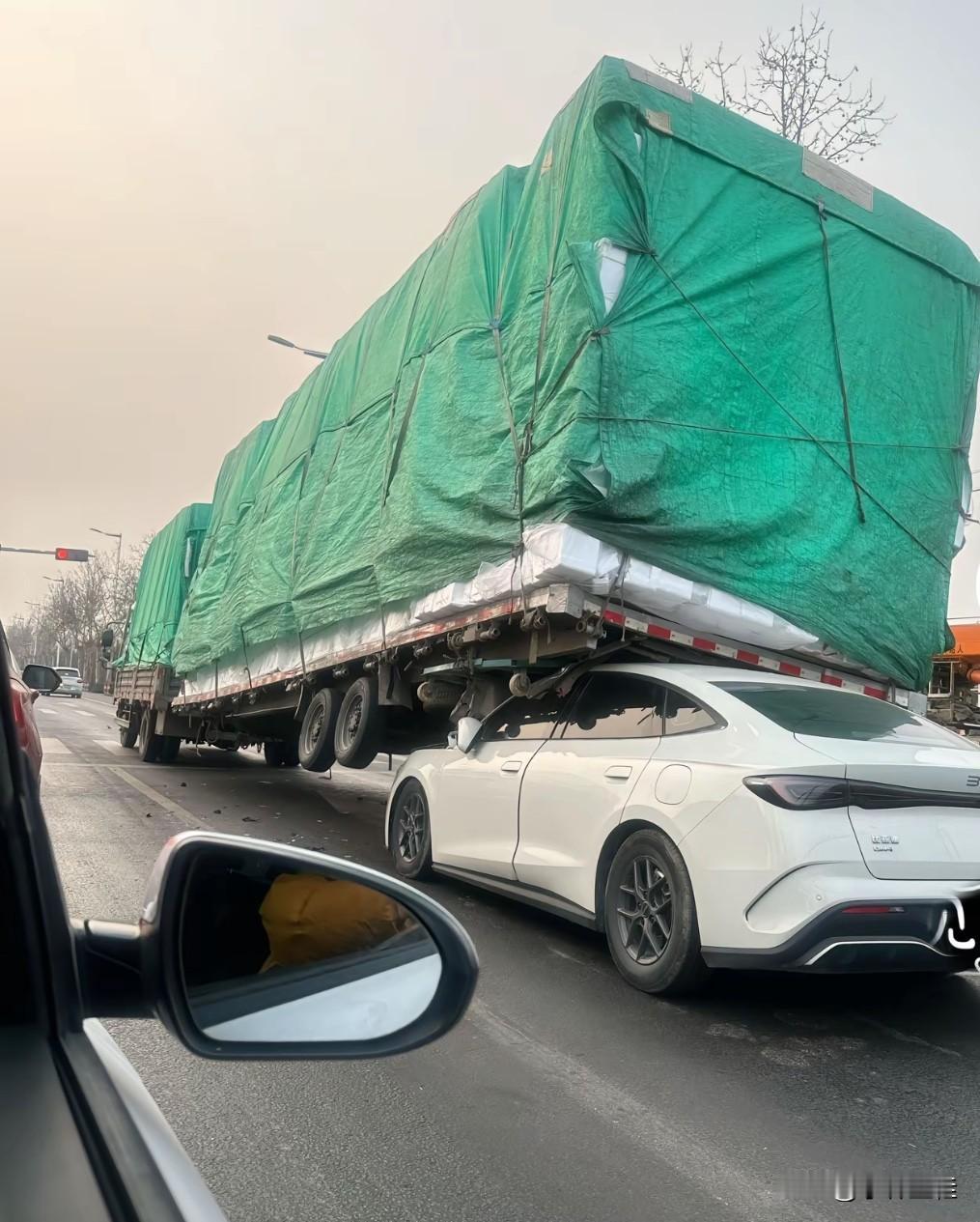 比亚迪海豹06:“大挂兄弟,你这也不行啊,就这么轻易的被我顶起来了!” 大挂车:“你把我顶起来了,你还有理了?” 比亚迪海豹06:“我就纳闷了,你怎么就被我顶起来了呢?” 大挂车:“你特么问我,我还想知道呢!在路上天天被你们比亚迪干!” 话说,虽然大挂车满载的是一车泡沫,但加上车身应该也不会太轻吧?那么海豹06是怎么把它顶起来的? 另外,从现场事故图来看,比亚迪海豹06貌似也不是太严重,A柱都没变形,估计也就车顶盖被扯开了,大家觉得呢?
