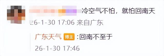 广东省气象台预计,1月31日—2月2日,新一股中等强度冷空气影响广东,粤北、珠三角以东市县前期有小到中雨,中北部市县气温下降3~6℃。