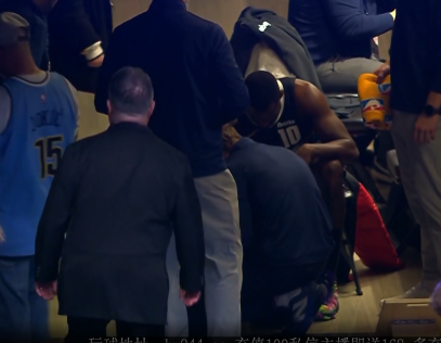 第四节比赛,哈达威意外扭伤脚踝,随后在球员通道紧急查看脚部伤情。