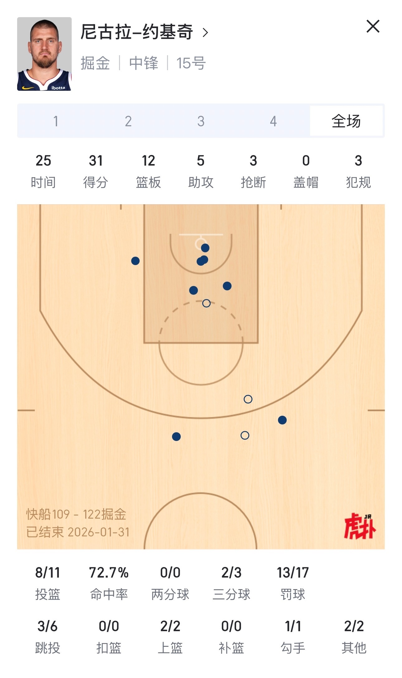 约基奇时隔一个月后复出强势依旧,掘金轻松战胜快船。