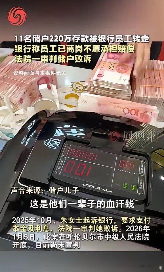 “严查到底!”2025年10月,内蒙古,一女子在窗口存了75万,没想到去取钱时,发现自己的存款被工作人员偷偷转走,当她想去讨说法时,却被告知该工作人员已经离岗,女子无奈,只能起诉他们,没想到自己还败诉了!网友:太荒唐了!扎兰屯的冬天本来就冻人,但对朱大姐来说,最透心凉的还得是银行柜台上的那块显示屏。那是她一辈子的血汗钱啊,75万本金,外加这几年的利息,结果屏幕上就俩字:归零。那种感觉怎么形容?就像你辛苦盖了一辈子的房,眨眼间被人夷为平地,连块砖都没剩下。这不是做梦,这是在内蒙古呼伦贝尔扎兰屯市发生的真事儿。咱们把日历翻回2021年7月。那时候朱大姐拎着个沉甸甸的布袋子进了银行,那种老式的布袋,里面装着75万现金。她图啥?不就图个银行安稳嘛。接待她的柜员叫孟某芝,穿着制服,坐在防弹玻璃后面笑脸相迎。说实话,换了谁不迷糊?对咱老百姓来说,那身制服就是金字招牌,谁能想到坐在柜台里的正式员工是个雷?也就是这份天然的信任,让朱大姐彻底栽了。孟某芝看准了大姐上了岁数,玩不转智能设备,一句贴心的“阿姨你不用操心,我来帮你弄”,就把身份证和密码都要过去了。那几分钟里,大姐以为自己在办存款,其实是在签“卖身契”。这一笔笔签字下去,那75万现金是在柜台上交出去了,可数据流根本没进银行大账,像是长了翅膀,直接飞进了孟某芝自己的腰包,转头就被她扔进了期货市场或是挥霍掉了。直到东窗事发,朱大姐才知道自己不是唯一的倒霉蛋。同一个网点,同一个套路,孟某芝一共收割了11个人,坑了220多万。现在骗子是被抓了,判了12年,诈骗罪。但这事儿最绝望的地方在于:人进去了,钱没了。孟某芝早就把钱败光了,根本赔不起。那这笔账该谁算?大伙儿肯定觉得是银行啊。我在你的地盘,找你的人办业务,钱没了你不赔谁赔?但银行法务那逻辑,真的是冷酷又精准:孟某芝已经离岗了,这是她个人犯罪,跟银行没关系。更让人心梗的是,一审法院居然还真就采信了这个说法。判决结果:储户败诉。理由是员工个人犯罪,银行无过错。这判决一出,简直是在挑战大伙儿的认知底线。合着以后我们进银行存钱还得自带测谎仪?那张防弹玻璃难道只防抢劫,不防内鬼?如果穿着制服在柜台里办业务都能叫“个人行为”,那银行大门干脆别开了。为了讨个公道,朱大姐她们没认怂,选择了上诉。就在这个月,2026年1月5日,这案子在呼伦贝尔中院二审开庭了。法庭上还是那套攻防战:银行到底有没有尽到监管责任?一句“员工个人行为”能不能当免死金牌?到现在,二审结果还没出来,大伙儿都在等那个锤子落下来。朱大姐手里那些单据,现在已经不光是债权凭证了,更像是一张张拍在金融体系脸上的质询单。咱们围观这事儿,也别光当个瓜吃。这漏洞要是堵不上,那朱大姐的“柜台惊魂”,理论上能发生在任何一个走进银行的普通人身上。毕竟,谁也没那火眼金睛,能看穿制服底下藏着的是颗敬业的心,还是个早已失控的赌徒。