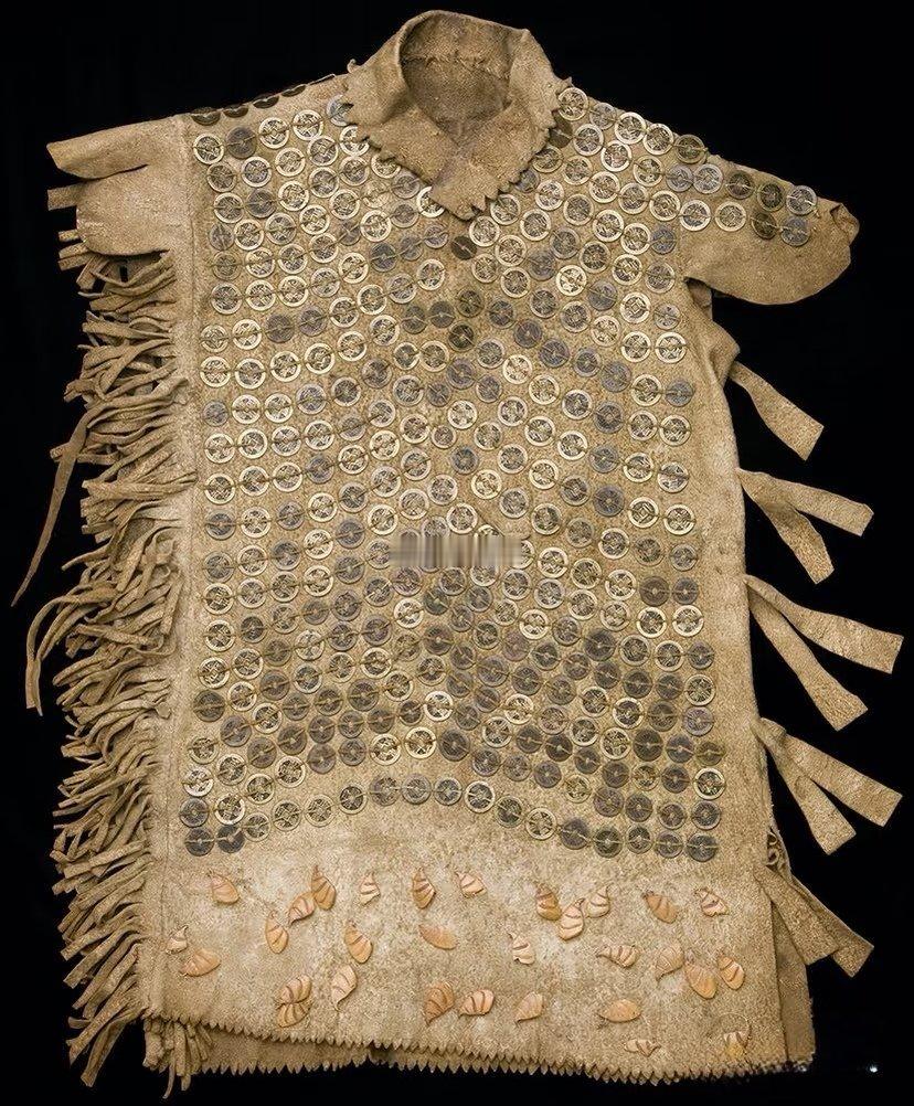 【特林吉特铜钱铠甲(Tlingit coin armor)】,是18-19世纪阿拉斯加东南部特林吉特人(北美太平洋西北海岸原住民)利用太平洋毛皮贸易获得的清代中国铜钱以及“宽永通宝”等日本铜钱制作的独特护甲。历史那些事