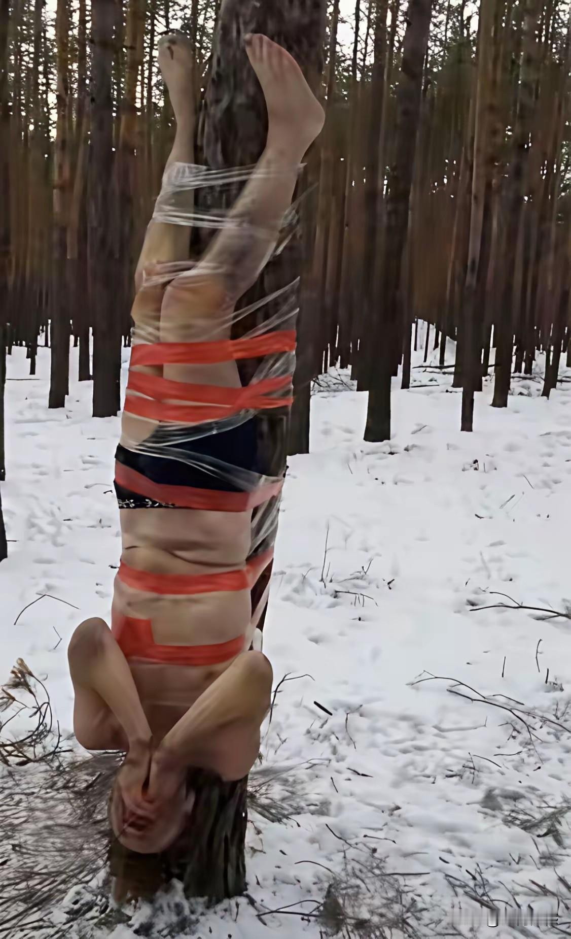 白雪皑皑,天寒地冻,把人捆绑在树上,也没有穿多少衣服,这简直就是虐杀,通过仔细观察这两张照片,并不是年代久远的照片,因为他们身上捆绑的都是胶带,这就是现在的东西,如果是几十年前的照片,那时候还没有胶带呢,这是什么人干的呢?为什么要这么对待他们?这有点太不人道了!