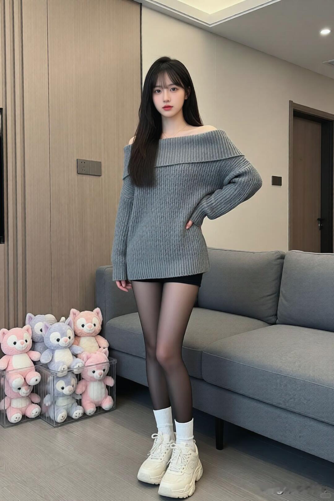 灰色针织衫搭配黑丝袜,元气感少女穿搭穿搭 如何穿搭会具有少女软妹感 纯真少女感穿