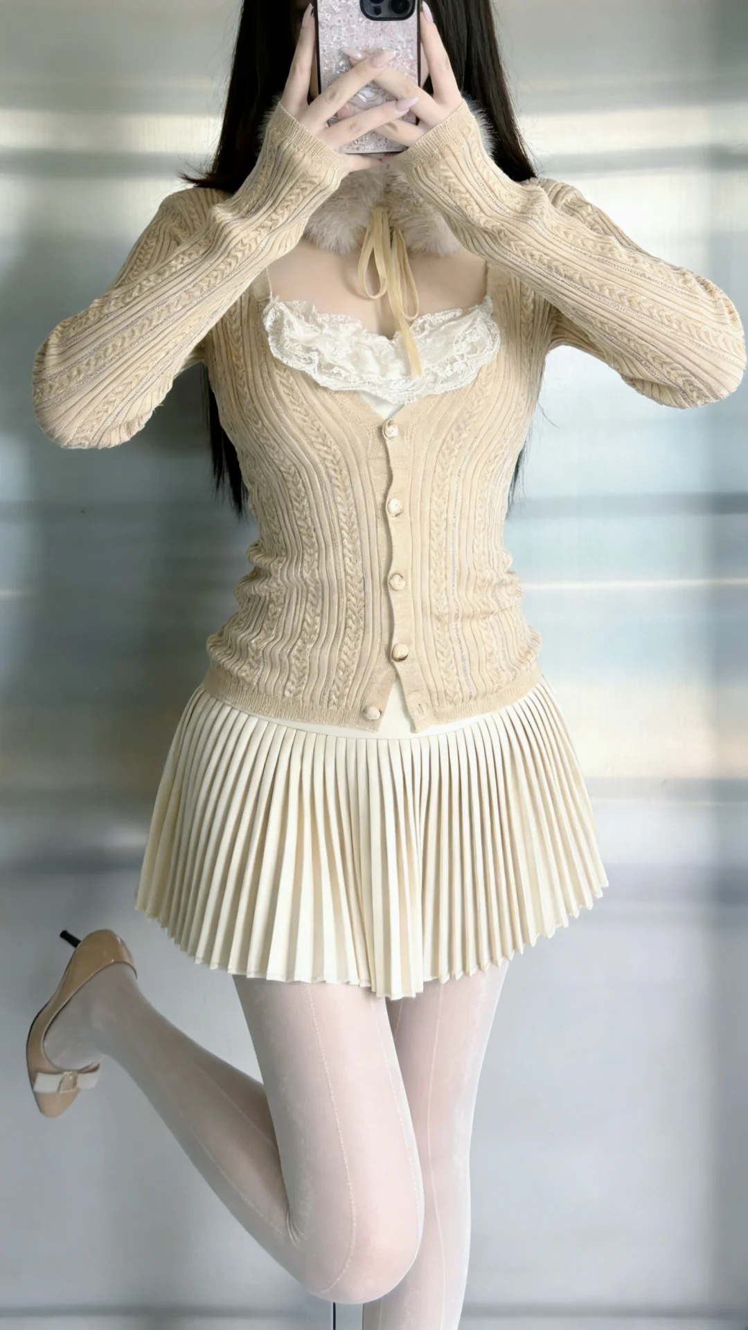 韩系温柔感穿搭!针织衫➕百褶裙~