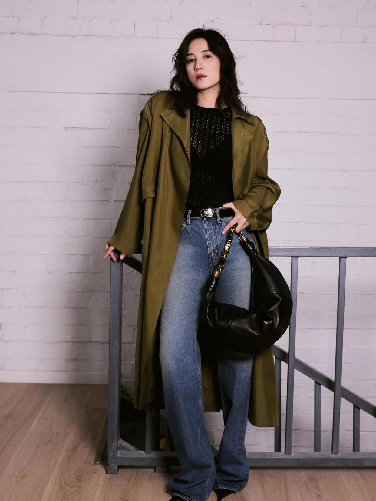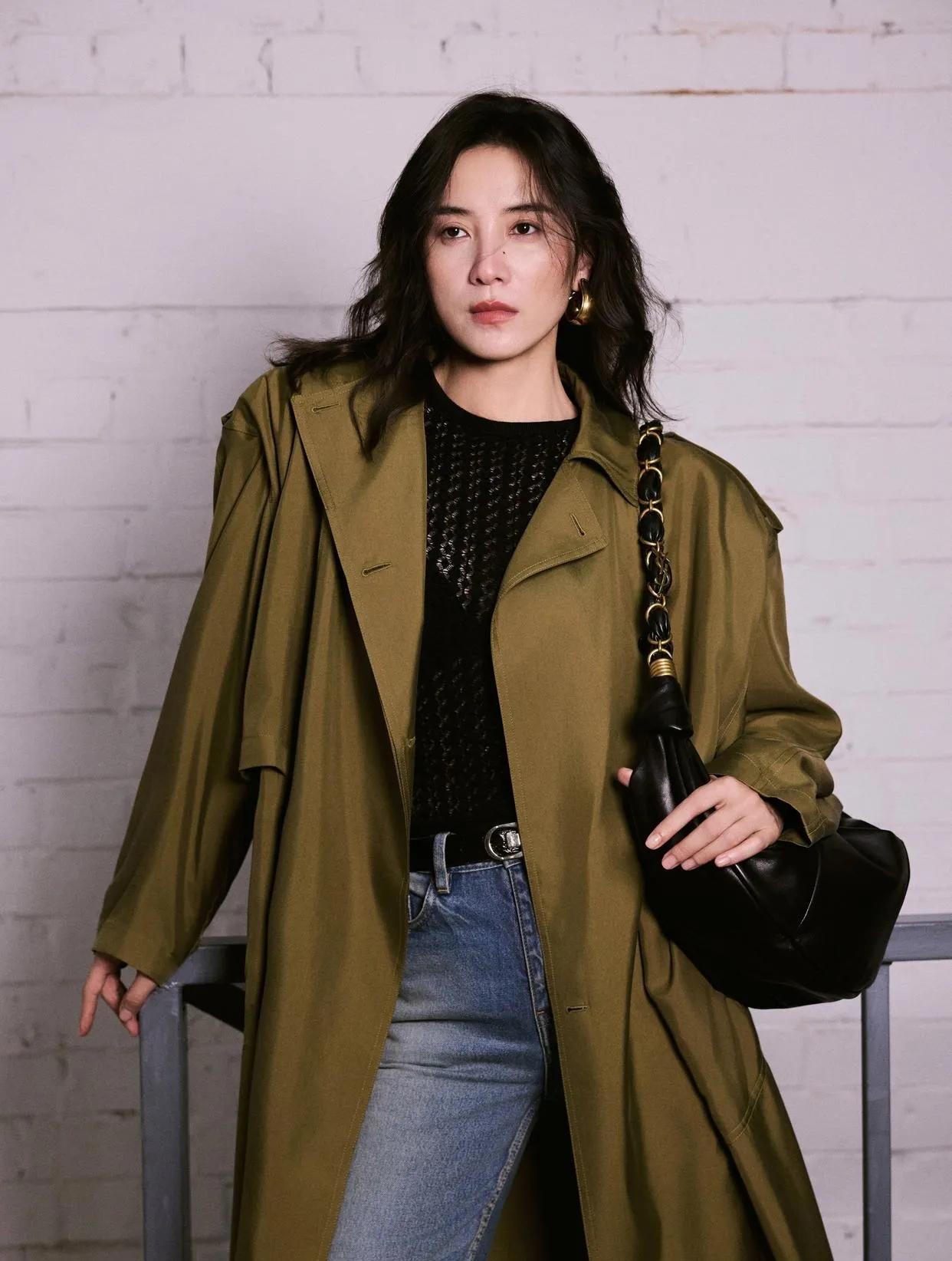 宋佳的中年穿搭,才是真顶流! 被宋佳这套橄榄绿风衣穿搭美到失语!宽松风衣自带慵懒滤镜,内搭黑色镂空针织衫,下身直筒牛仔裤配尖头鞋,松弛又高级。 原来中年女性的时髦,根本不需要用力过猛。这种随性又有品的状态,才是我们该学的模板!