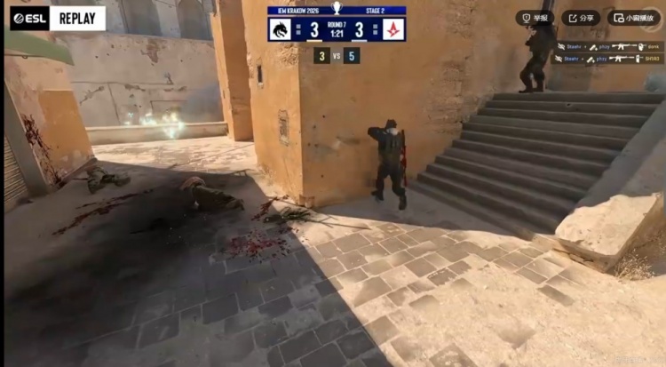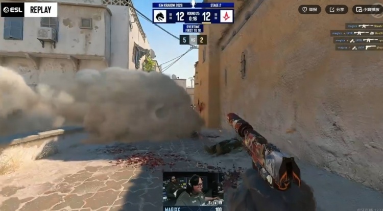 第一局Spirit还是分配双狙,A队四人集合A小道准备进攻!tN1R给到关键闪光!magixx直接摸到烟雾近点砍下四杀!