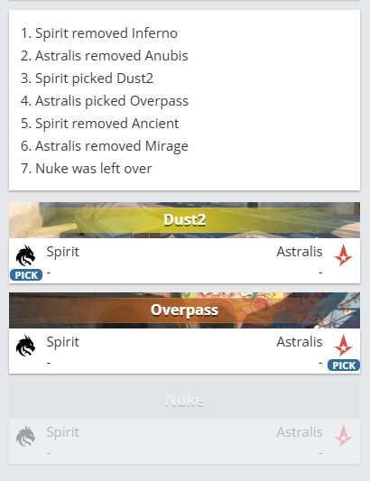 图一选图Spirit选择Dust2沙漠2(Astralis选择CT方开局)
