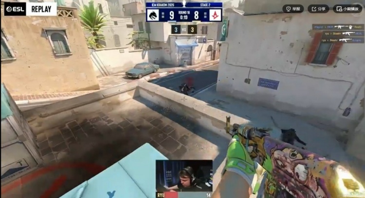 第六局Spirit再起一局双狙战术,双方在中路和A小都交换道具,A队五人集合A小道准备打一波!sh1ro斜坡大狙再次放炮白给,ryu的AK追击三杀破点,2V3的局面Spirit又只能保了!9-9!