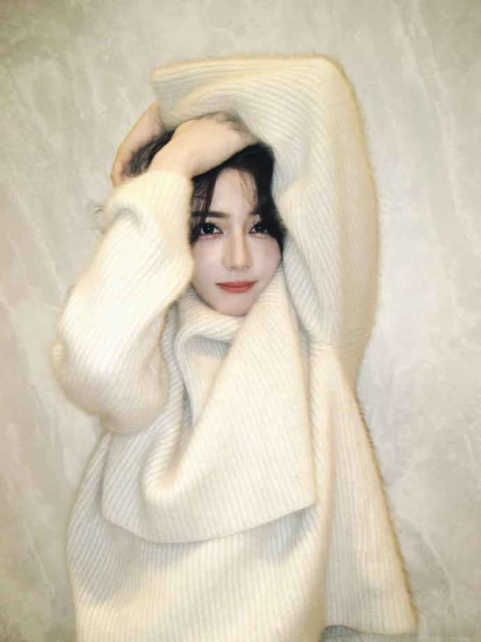 迪丽热巴奶呼呼的 迪丽热巴奶呼呼的,真的是超可爱的呀,白色系的搭配风格,显得整