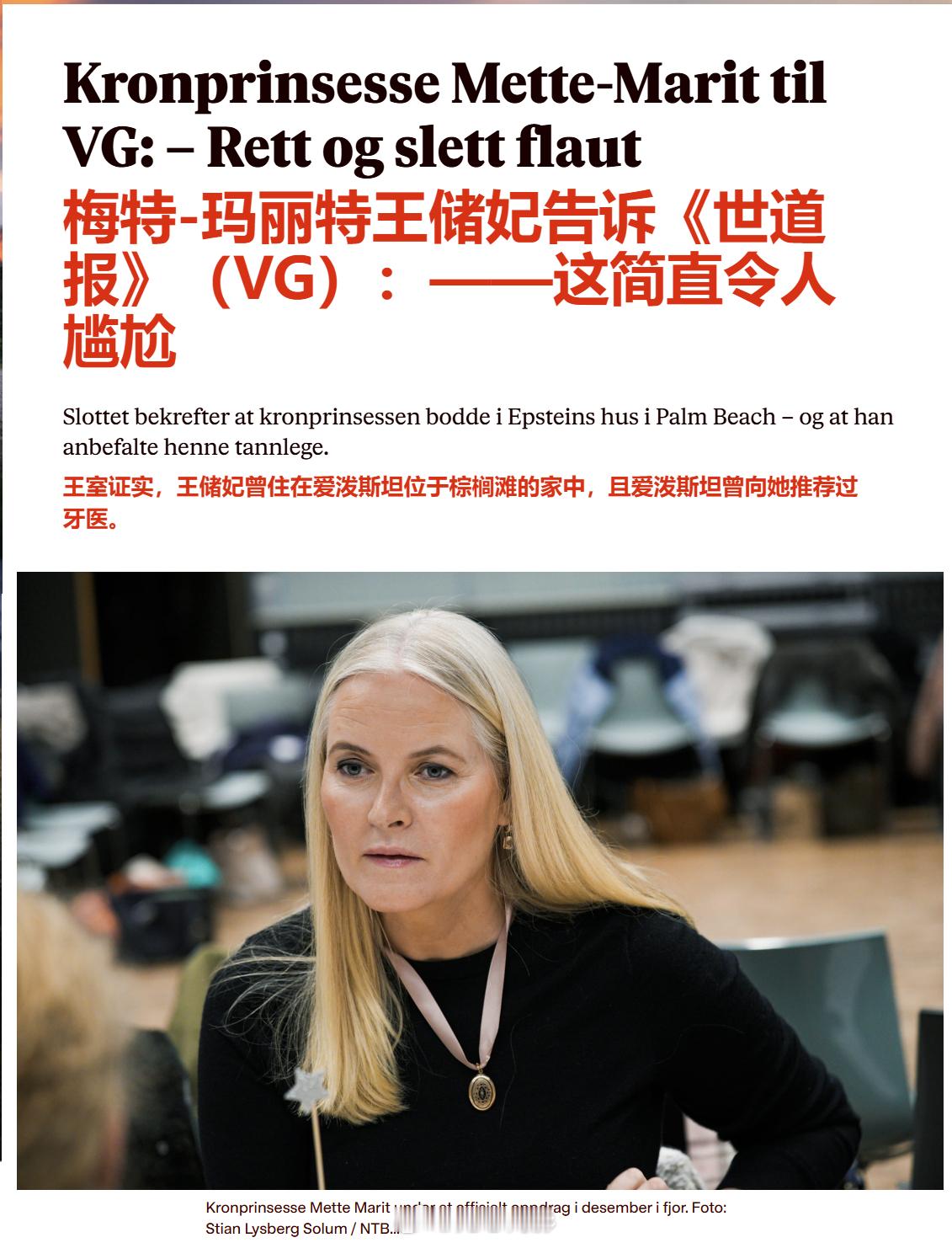 挪威王储妃梅特-玛丽特发声明,此前,她的名字在本次新曝光的爱泼斯坦文件里出现1000多次。