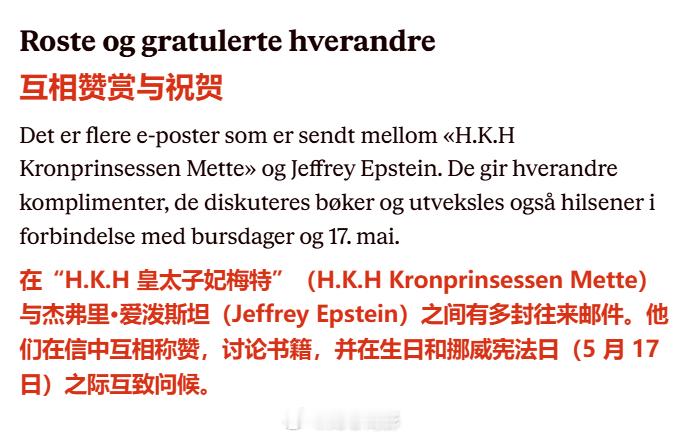 王储妃说她2013年就和爱泼斯坦断绝联系了,她说“他想利用我们的关系”,但是随着文件的进一步曝光,本来就处在丑闻风暴中的挪威王室目前怕是一个头,三个大——你问挪威王室什么丑闻?